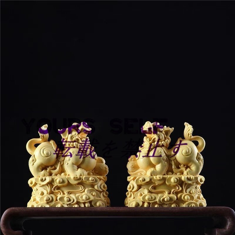 新作 可愛い 麒麟 神獣 木彫り 置物 工芸品