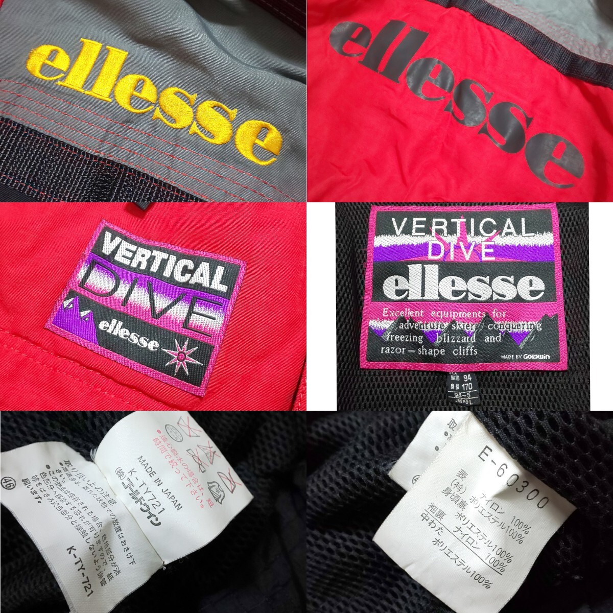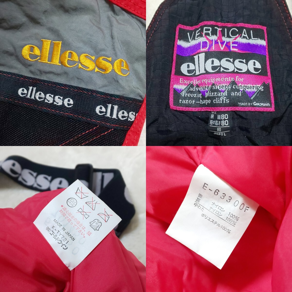 【極希少/美品】90s ellesse エレッセ ヴィンテージ セットアップ ナイロンジャケット スキーウェア スノボウェア スノーボード 刺繍ロゴ ゴールドウィン取扱