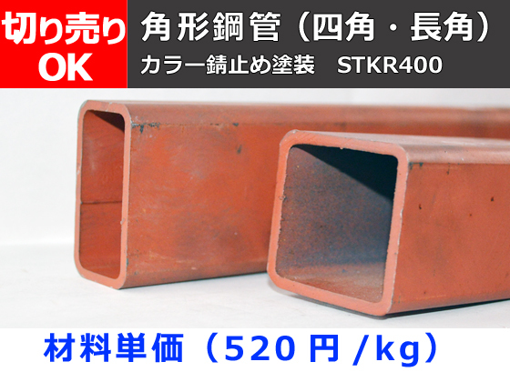 鉄製角形鋼管STKR(材質SS400)カラー(錆止め塗装処理材)既製品