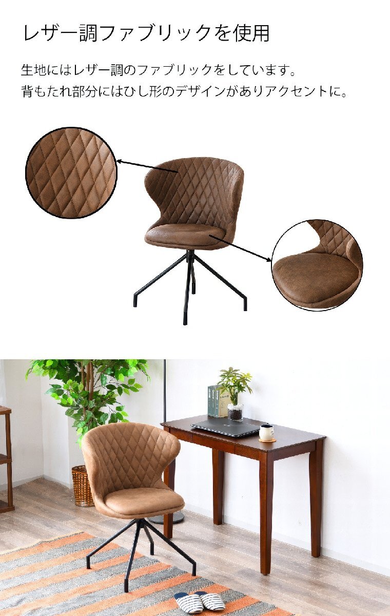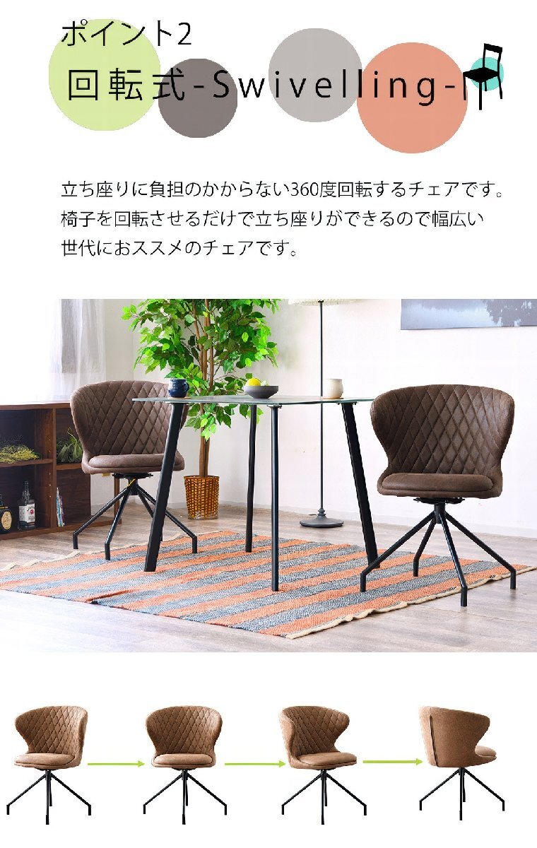 回転チェア ダイニングチェア 360度 椅子 回転 イス 幅55cm ダイヤステッチ 肘置き アームレスト ブラウン