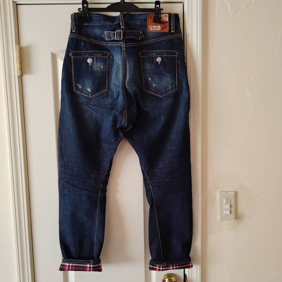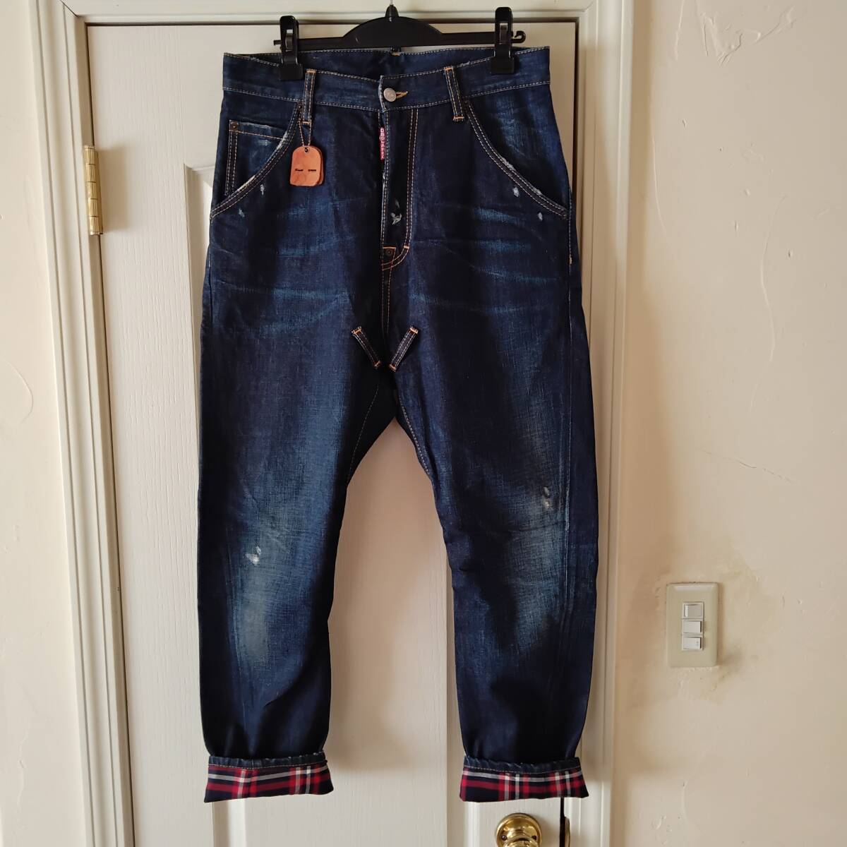 正規品 美品ディースクエアード DSQUARED2 インディゴコットンrollupデニム 裾裏チェック柄 サイズ44 イタリア製 美品 付属品アリのお品になります。