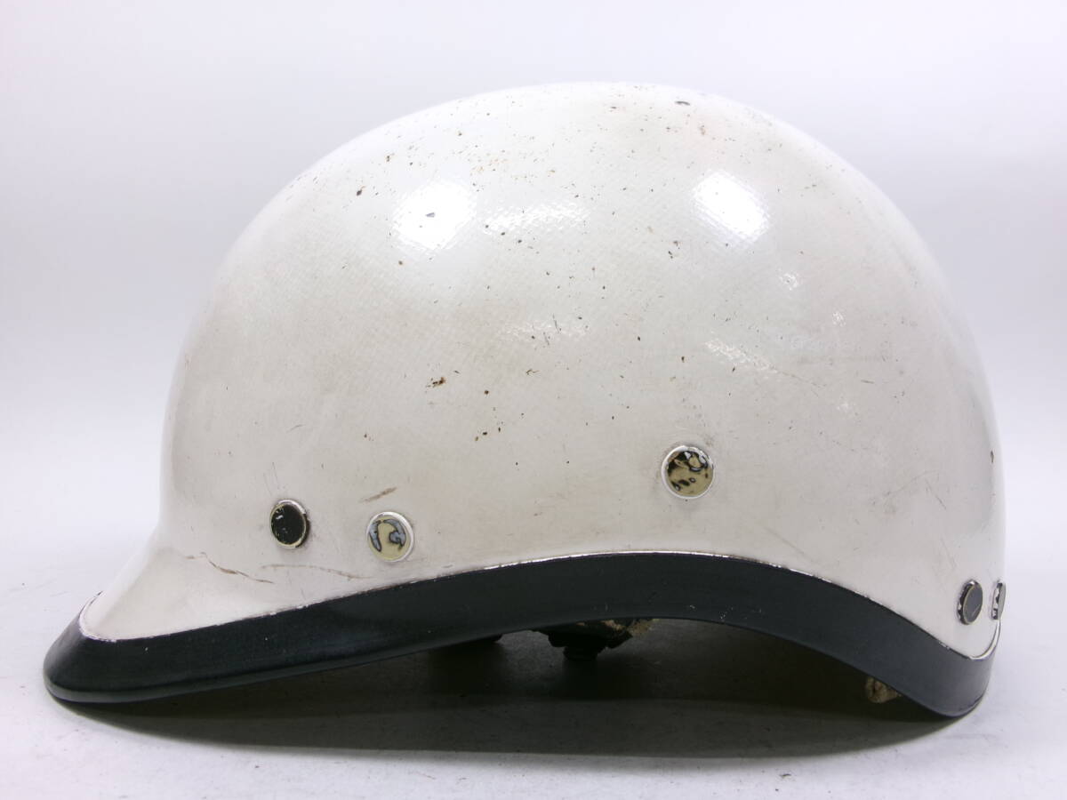 ■外装状態: 当時のリペイント物ですがいい雰囲気出ています。雰囲気重視のため磨きなどは行っておりません。 ■内装状態: 新しいホースレザー&スポンジでリペア済みなのですぐに使用可能です。 ■サイズ: 表記 L 被った感じLサイズ(約59~60cm)位です。 若干の誤差はご了承下さい。 ■コメント: 50s HARLEY-DAVIDSON CLUBSTER ハーフヘルメット Mシェルです。 帽体も小さく目深に被れるのでシルエットは抜群にかっこいいです。 両サイドのレザーストラップの表面にひび割れありますが現状で使用可能です。 希少な大きめサイズですのでお探しの方はお見逃しなく! ※装飾用です。公道での使用はお控えください。 |