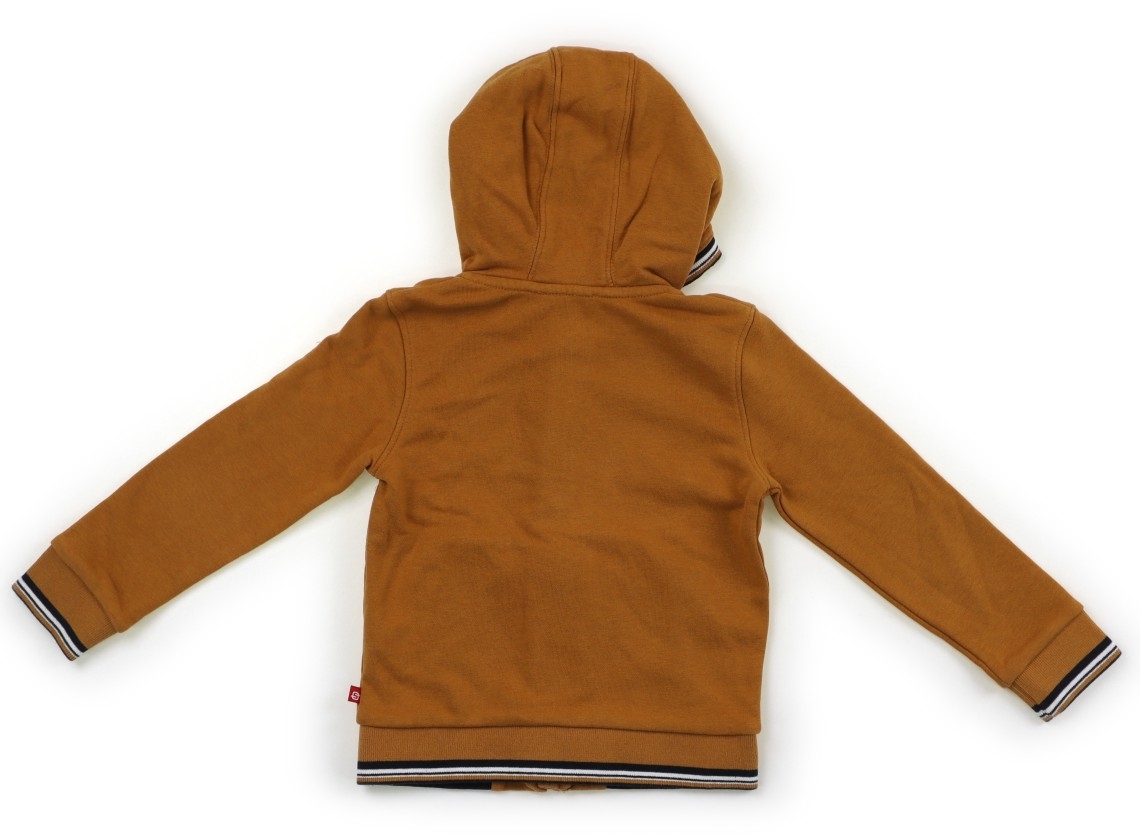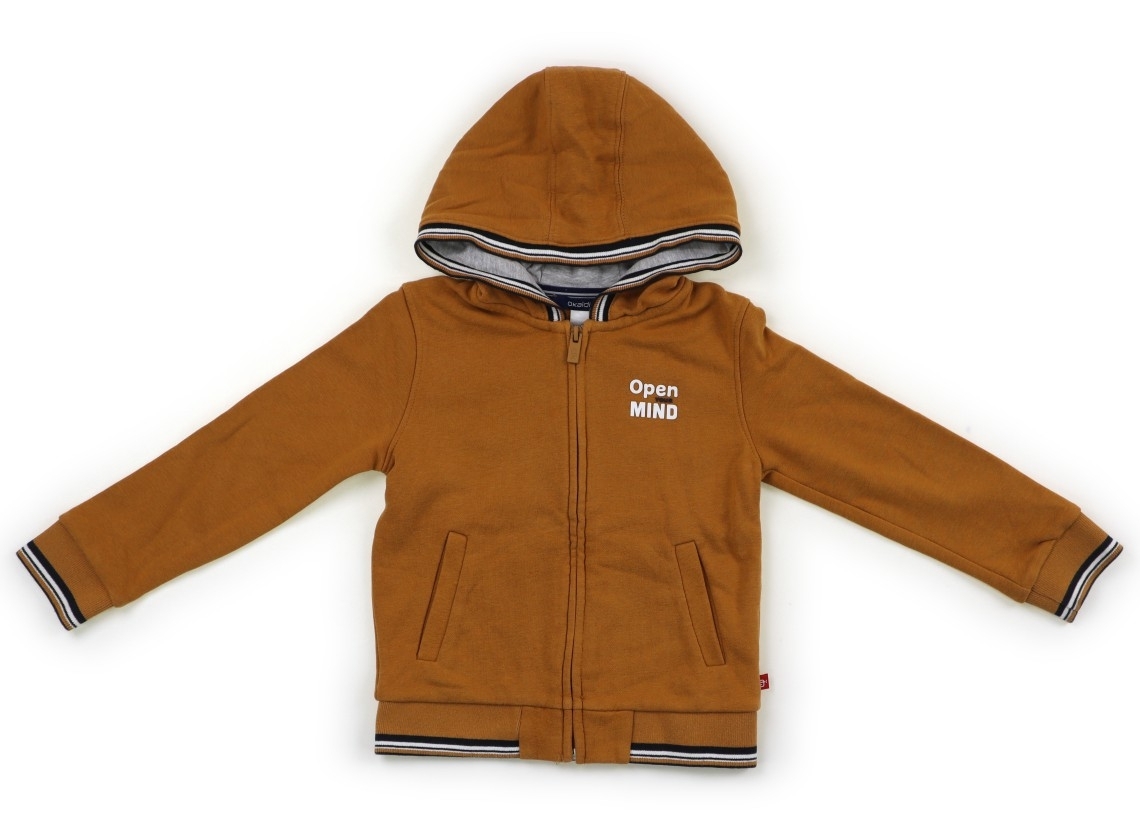 OKAIDIです。実際のサイズ表記は104cm。フードは縫い付けです。少し毛羽立ち、胸に薄いシミ跡が見受けられます。