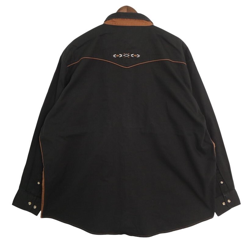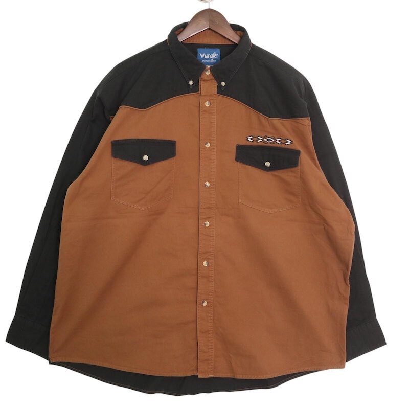 00's Wrangler ラングラー 長袖ボタンダウンシャツ ウエスタンヨーク メンズUS-XXL 刺繍入り ブラック ブラウン系 hsc-0065