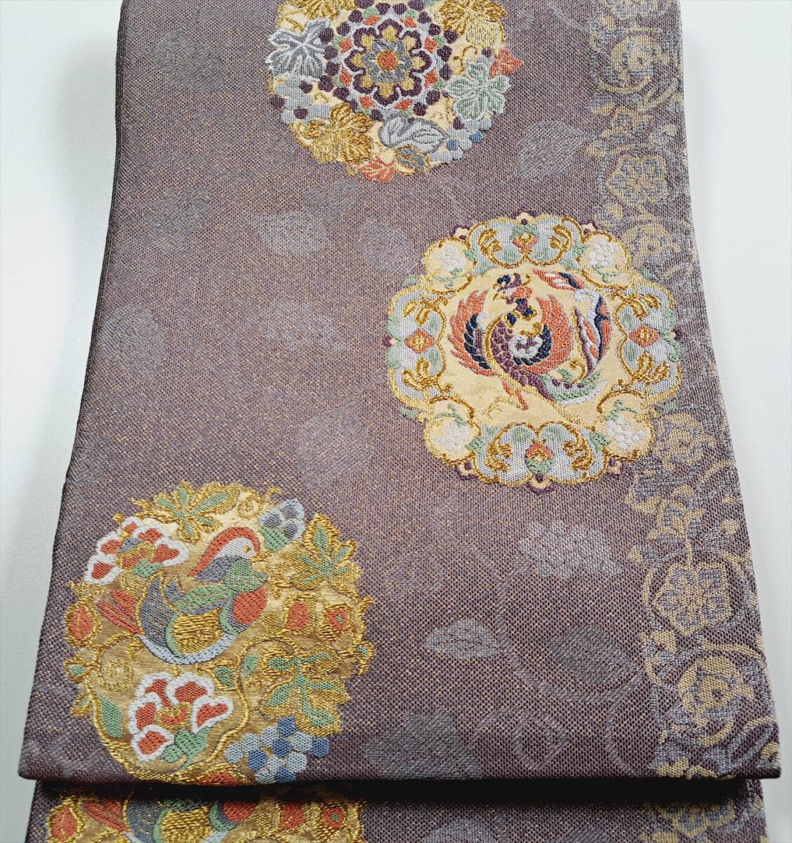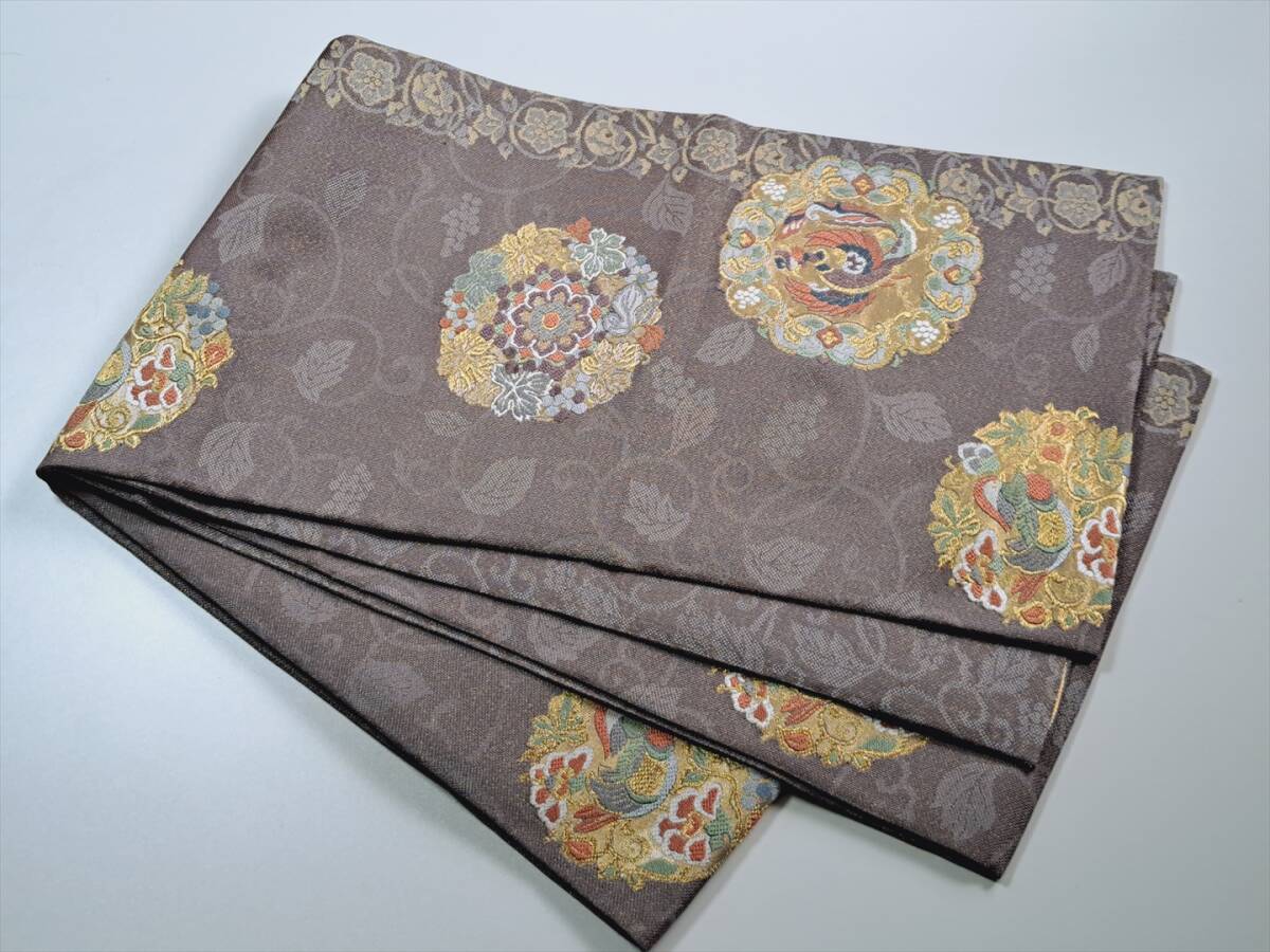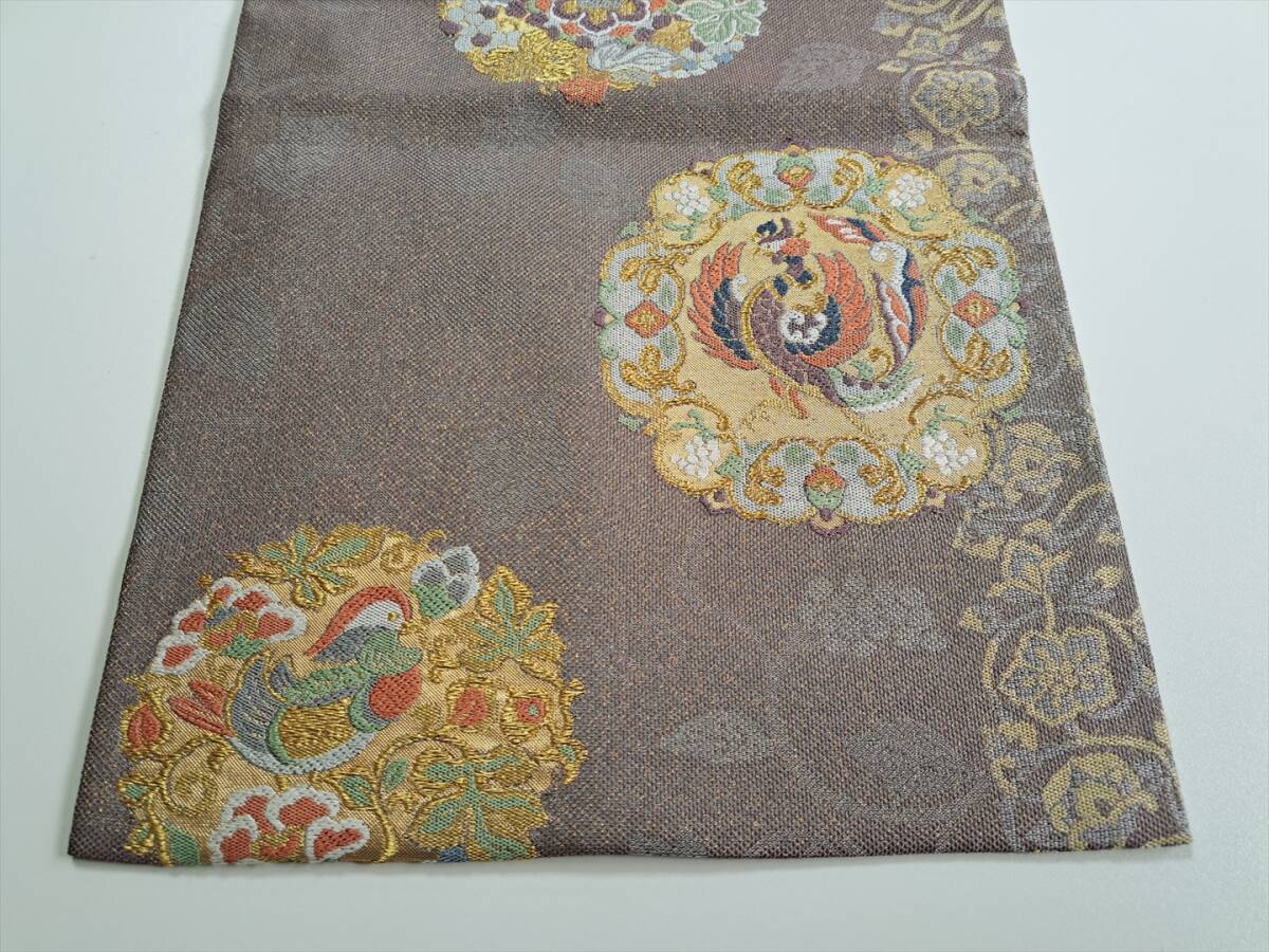 即決■着物の越田■幅30.5長さ418 正絹 袋帯 六通 金糸 鳳凰 おしどり 花唐草 華文 美品 D◇は19J18