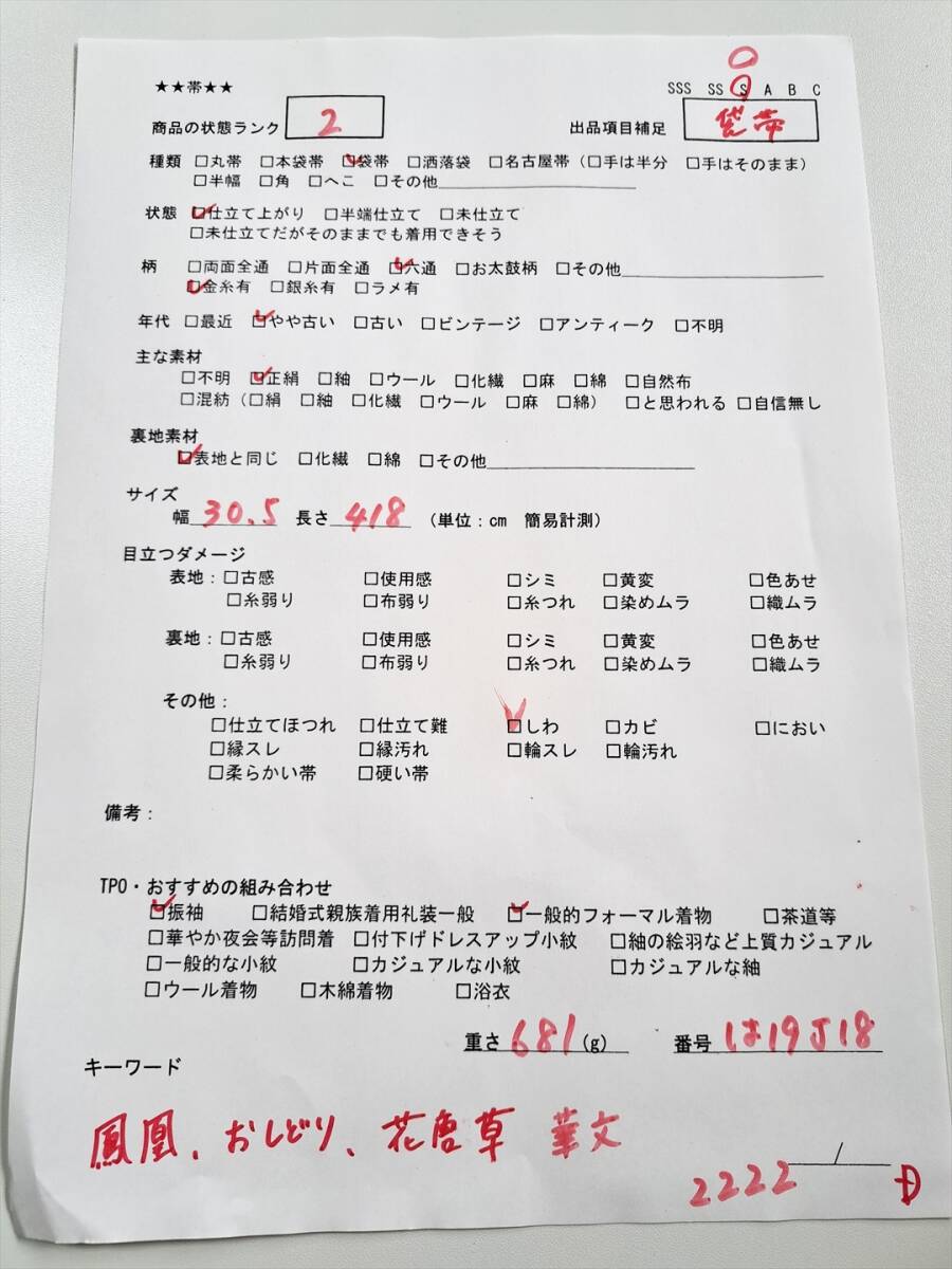 詳しくは写真2枚目の検品用紙の画像をご確認下さい。