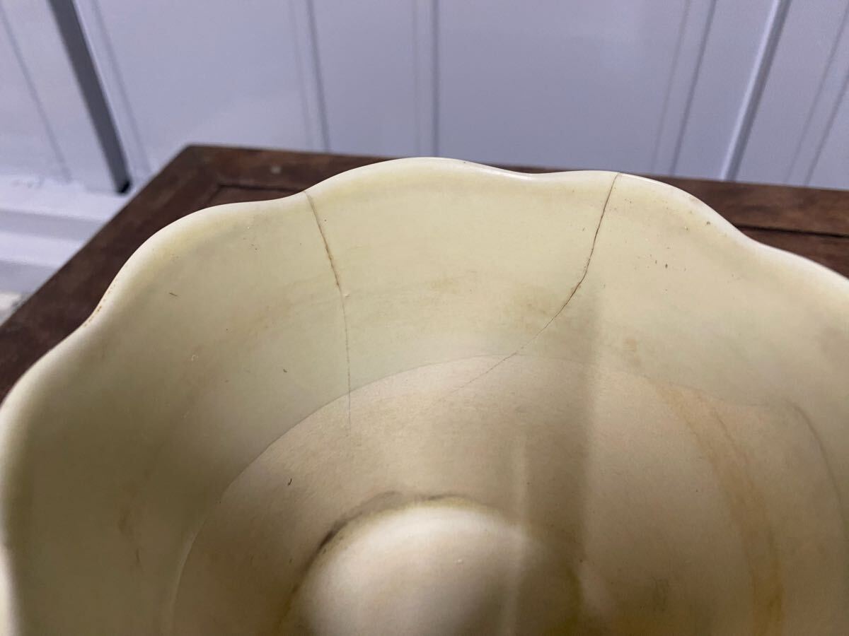 ひび割れ傷、窯傷があり屋外で保管していたので水あかや土汚れが多少あります。詳しくは画像をご確認ください。