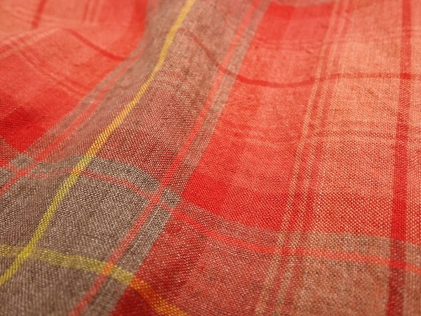 | 色 赤×オレンジなど柄 素材 表地 リネン100% 裏地 キュプラ100% | |