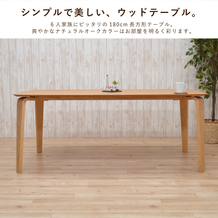 ダイニングテーブル 長方形 幅180cm ナチュラルオーク色 6人掛け用 marut180kaku-351ok 木製 カフェ風 角型 北欧風 7s-2k so hr