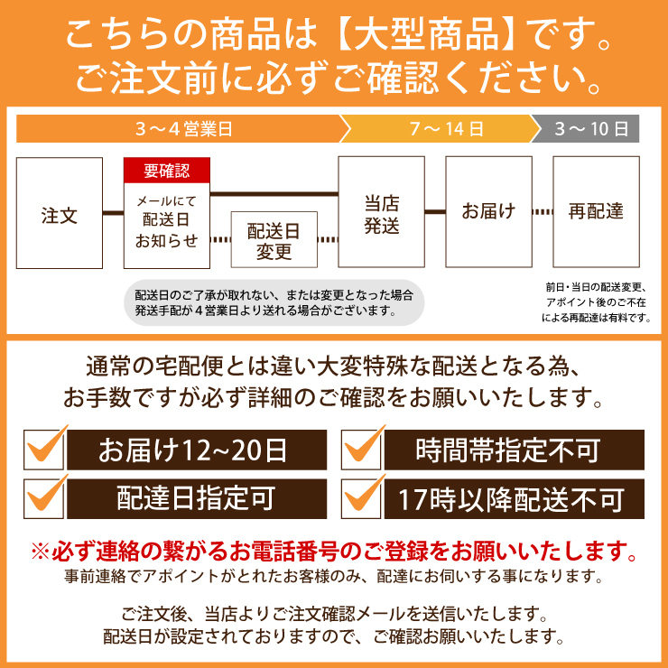 大型品は配達曜日が限定される地域がございます。