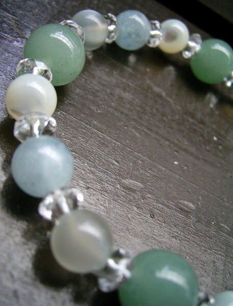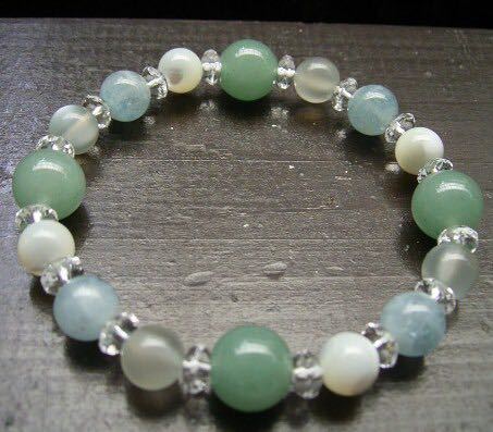 アベンチュリンxアクアマリンxムーンストーンx白蝶貝ブレスレット 天然石 パワーストーン