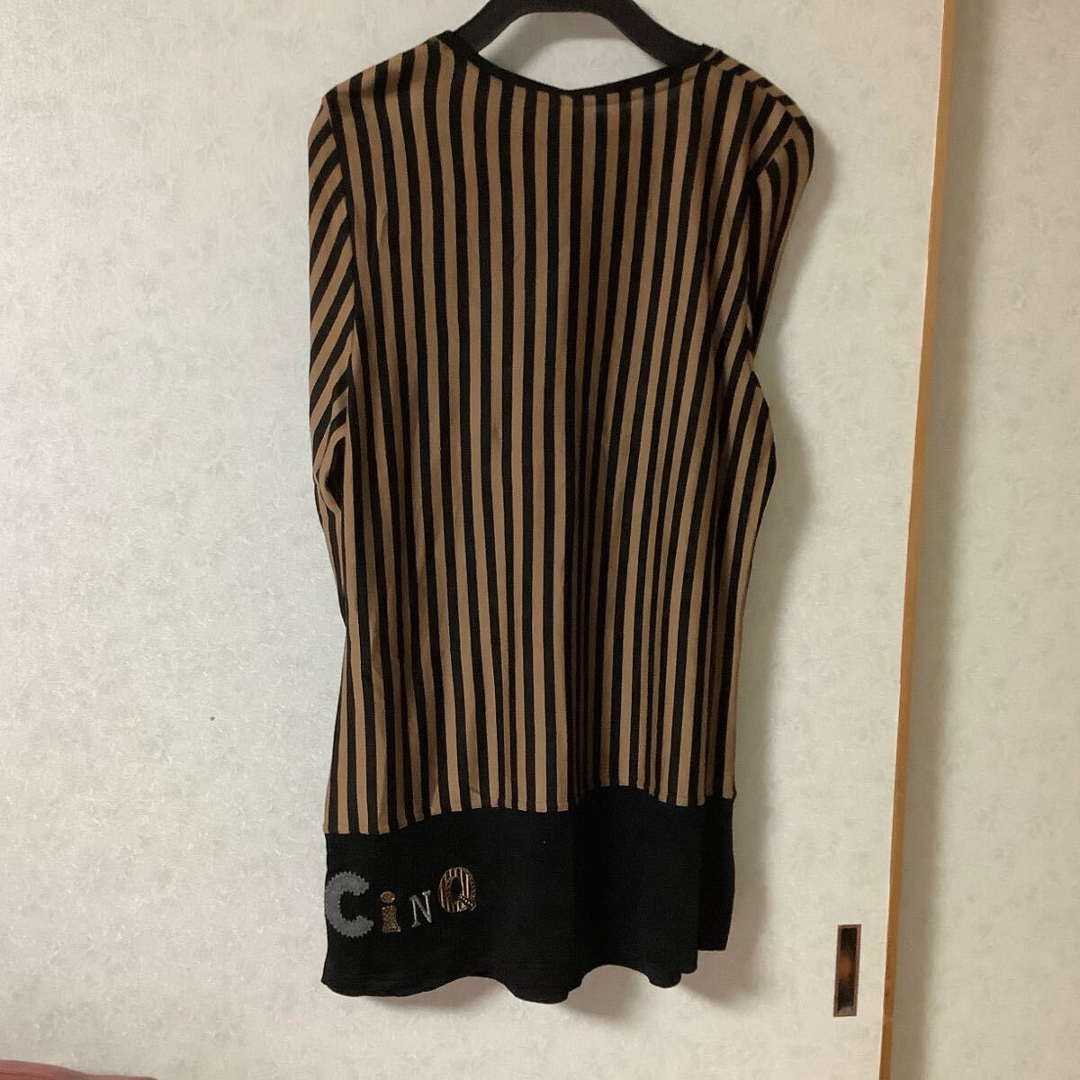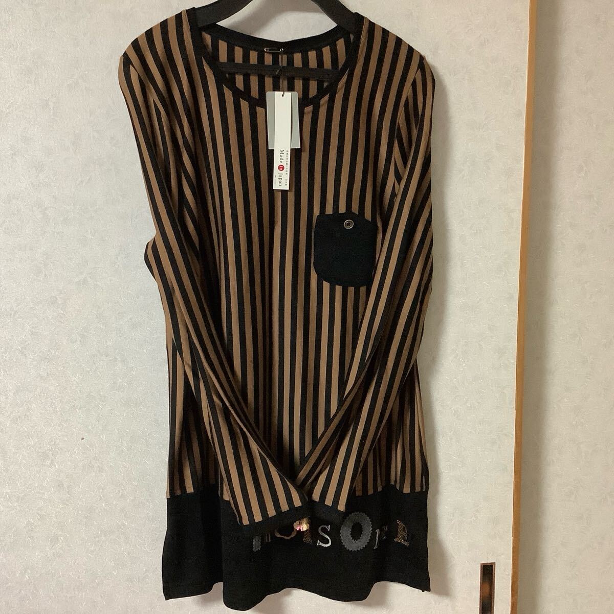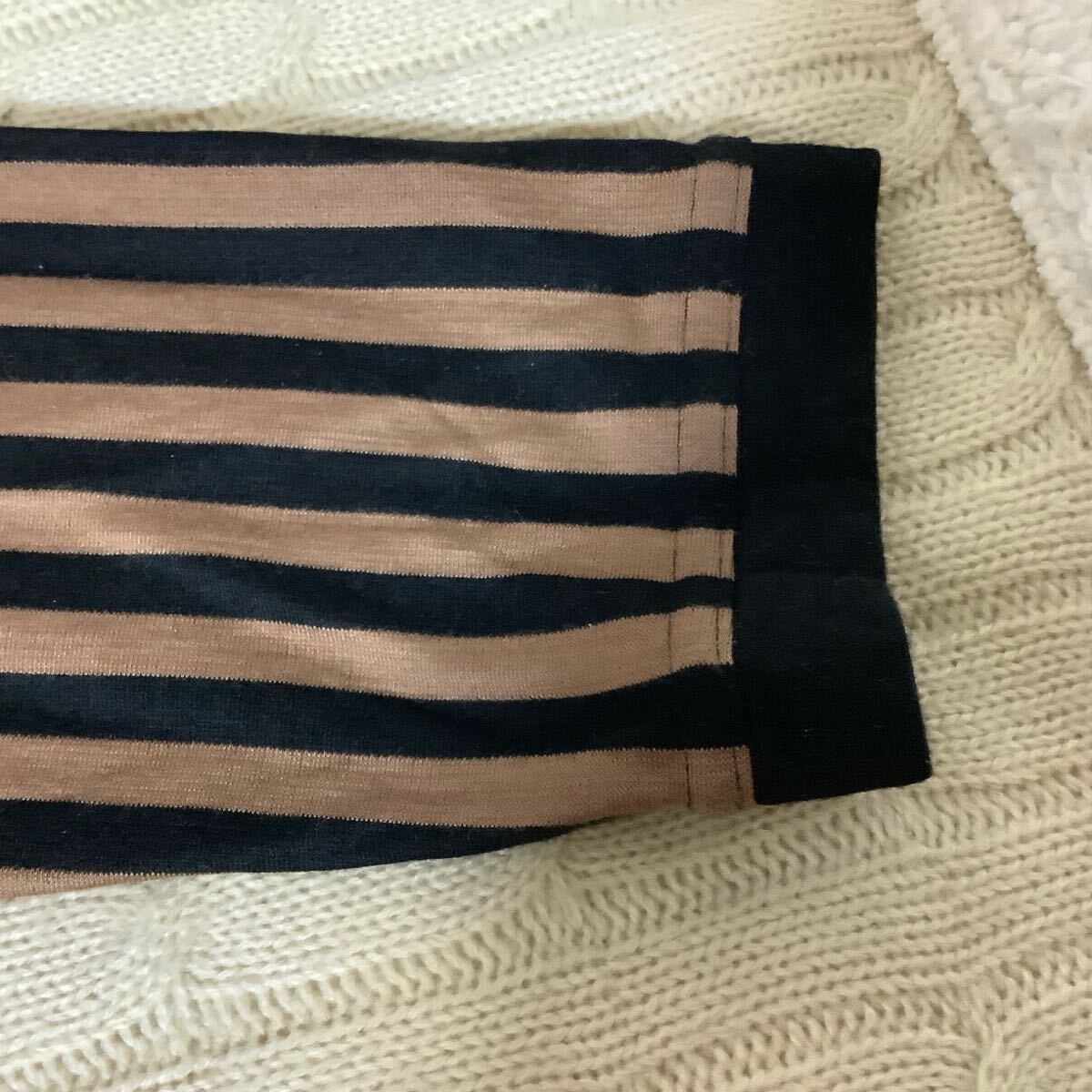 ○ YOU BEEの茶色と黒のストライプデザインのカットソー で伸縮性はあります