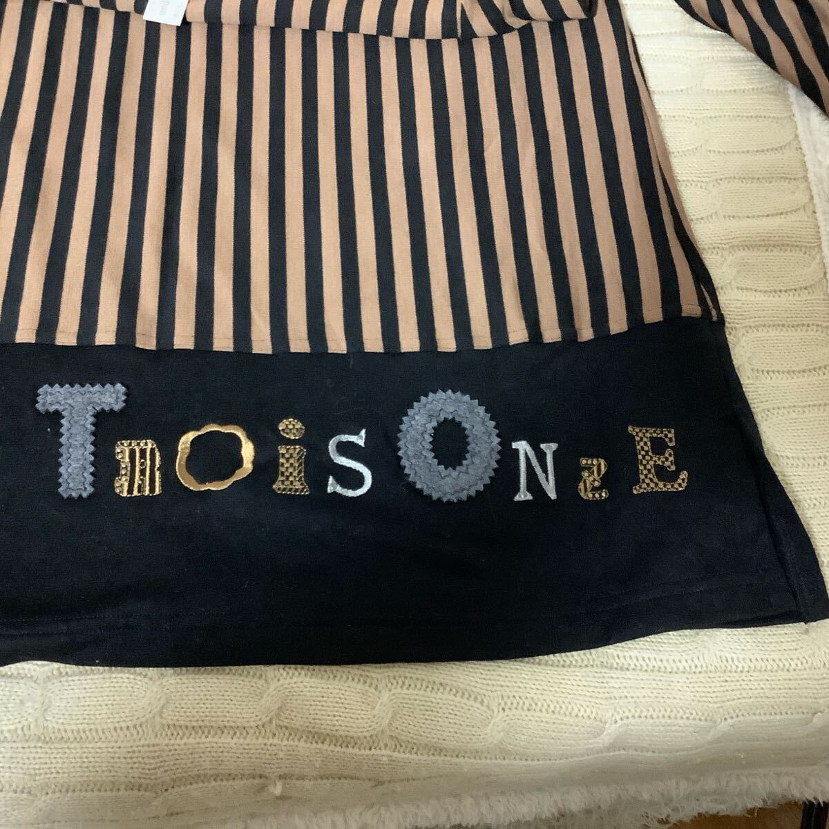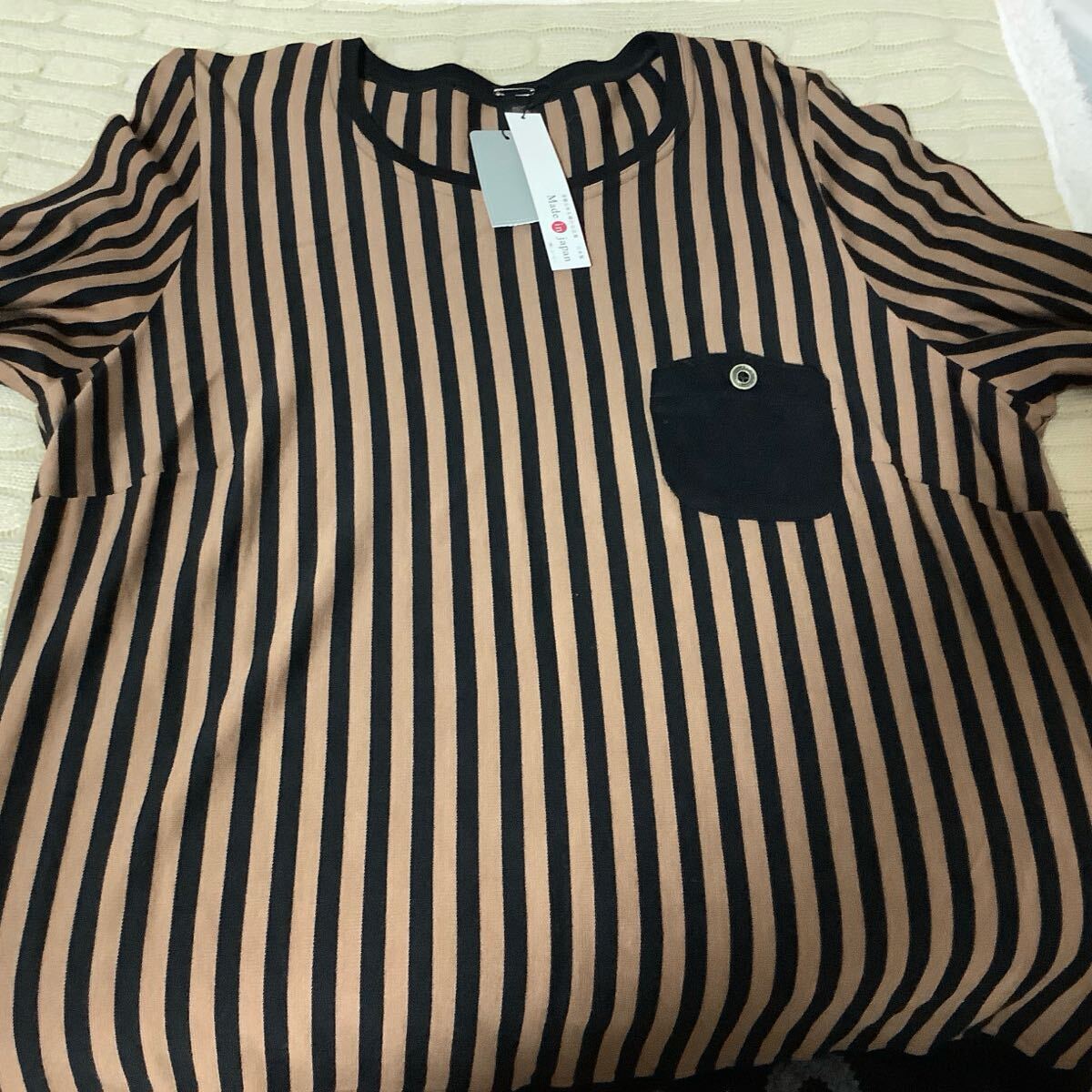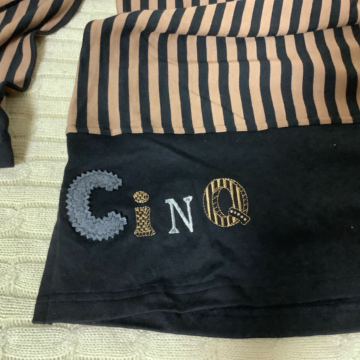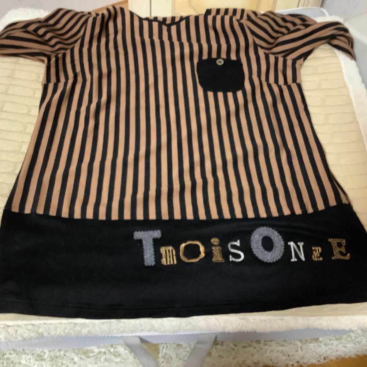 ○ YOU BEEの茶色と黒のストライプデザインのカットソー で伸縮性はあります