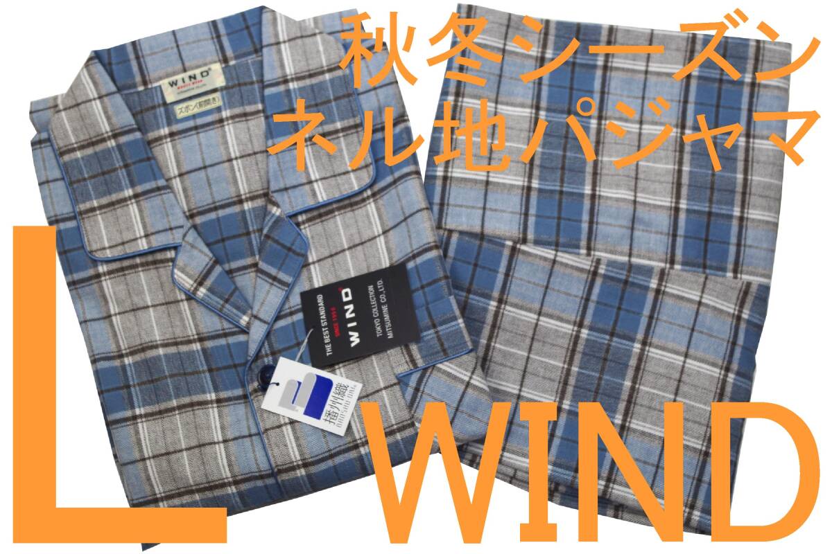 即決●WIND 男性用 長袖長パンツ 秋冬シーズン 播州織ネル地パジャマ(L)№13 新品