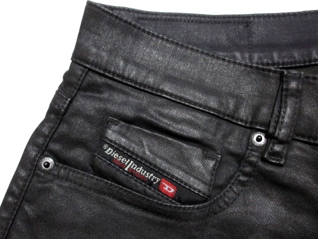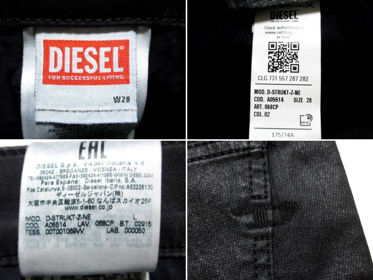 即決 美品良品 艶感ジョグジーンズ DIESEL D-STRUKT JOGG ディーゼル ストローク W28実77 D刺繍 ストレッチデニム 黒ブラック メンズ