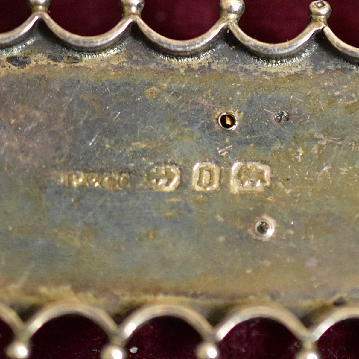 英国アンティーク 19世紀ヴィクトリアン ホールマークあり 彫銀のブローチ 本物保証