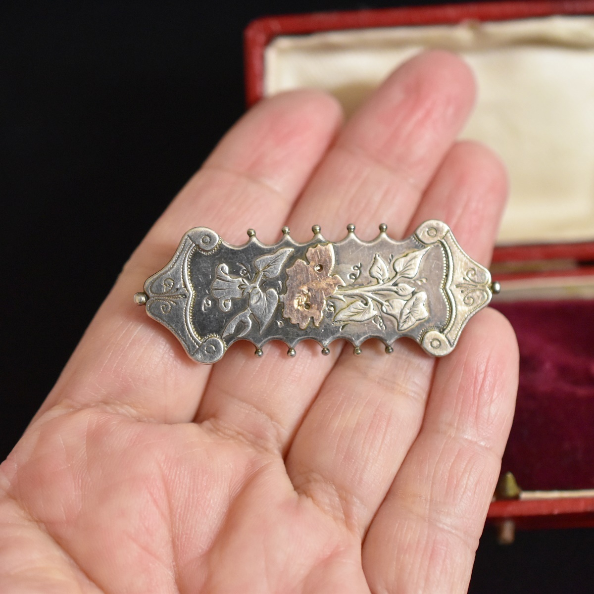 19世紀ヴィクトリア時代の純銀製のブローチです。