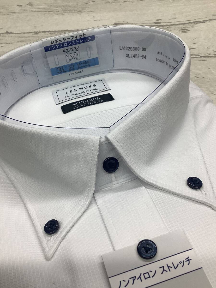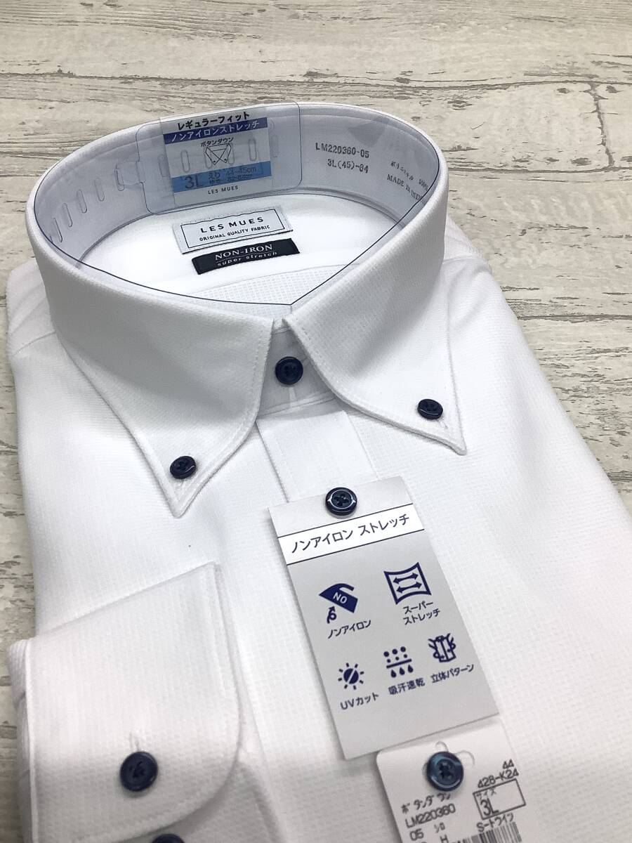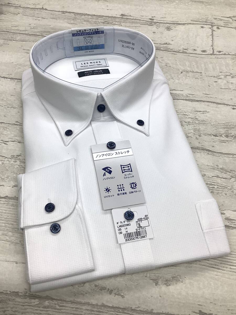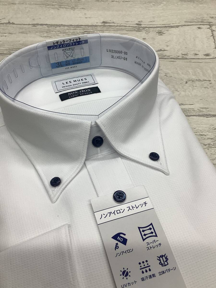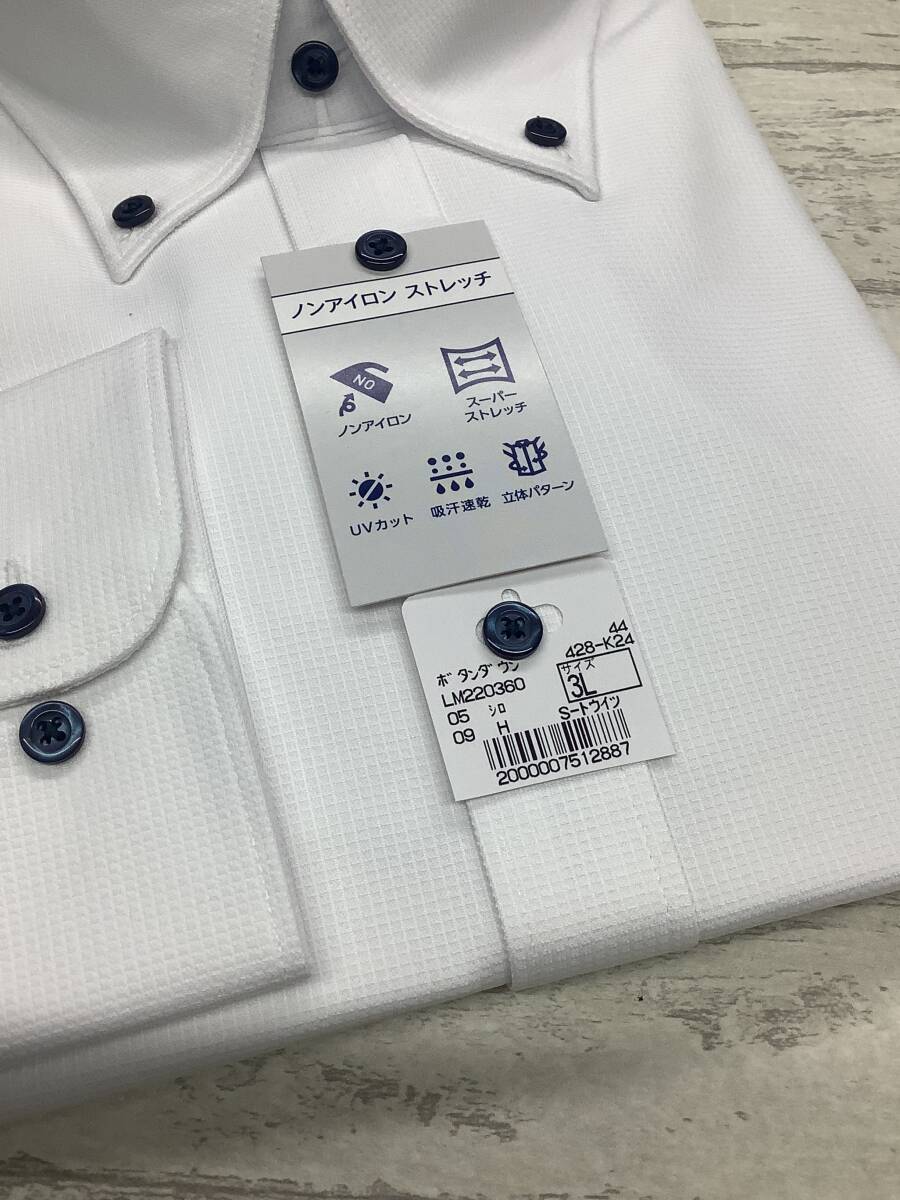 新品未使用★ 45-84 3Lサイズ ★スーパーストレッチ ボタンダウンカラー 白ドビー ドレスシャツ