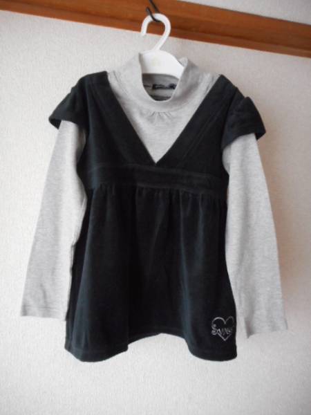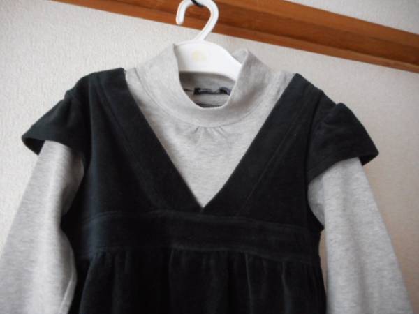 70 (1)★美品★重ね着風・タートルネックのカットソー  秋・冬用 ベロア布地