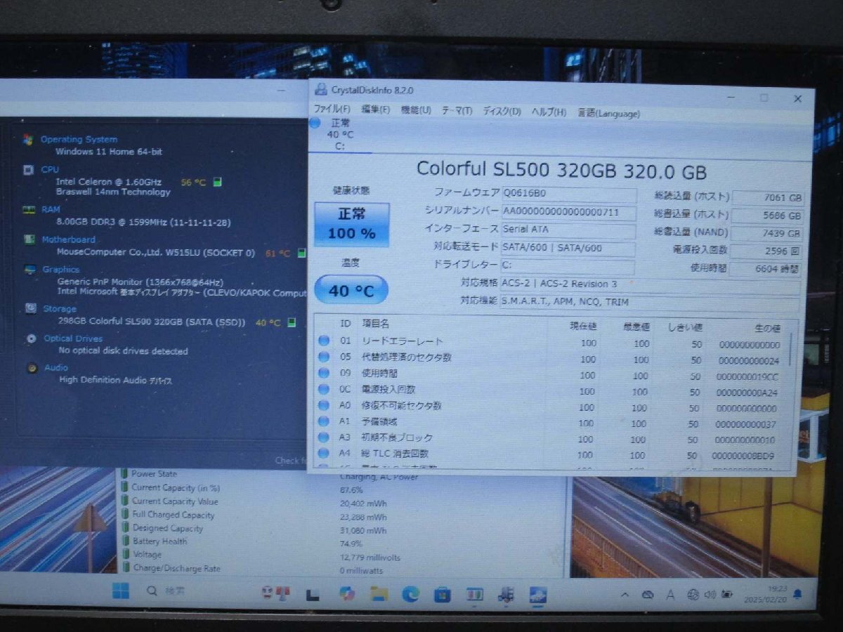 バッテリー状態 | 新品時と比較して 74% の性能。 (BatteryInfoViewで表示された参考値であり実際の容量・充電可否は保証対象外) |