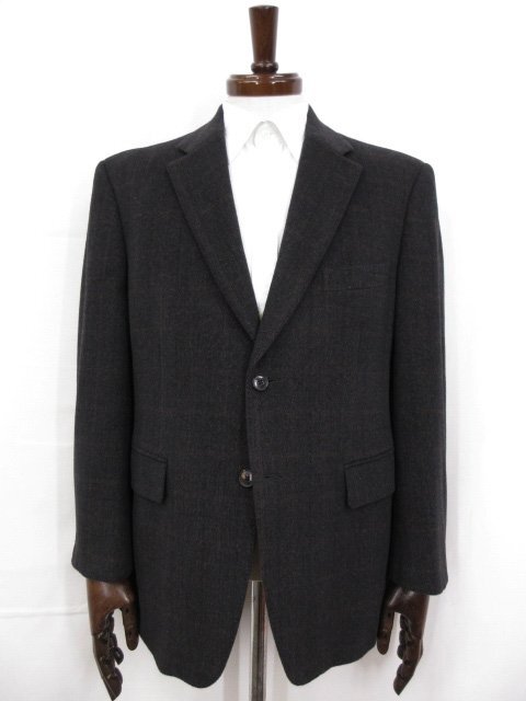極美品【ロイドクラブ Lloyd Club】カシミア100% シングル2ボタン 肉厚 織柄ジャケット (メンズ) size98BB4 茶×ブラック系 ◯17MJ9985◯