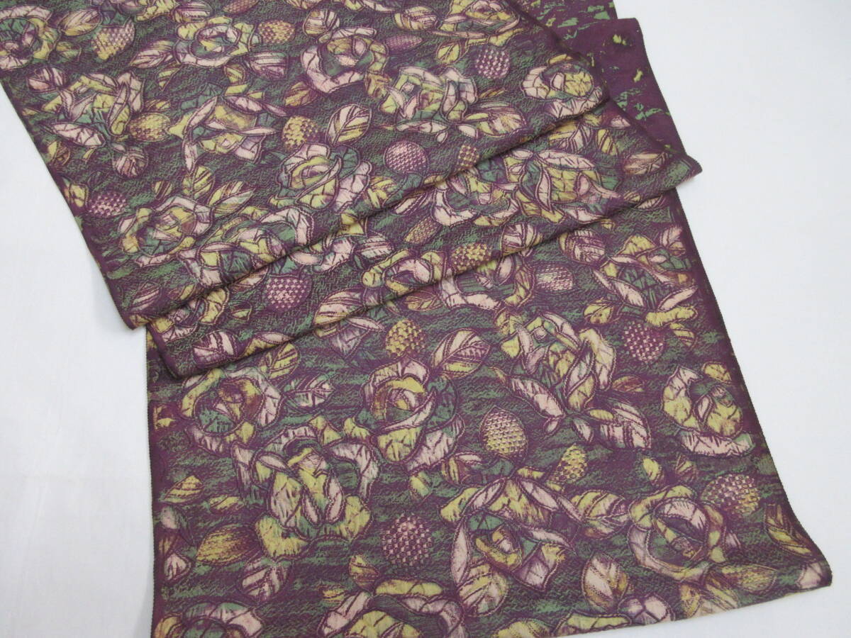 ☆ 正絹 薔薇地紋 地紋生かし染め 紫地 タスペストリー・テーブルセンター・バック・パッチワークや小物作りに如何! 80×37cm 3002