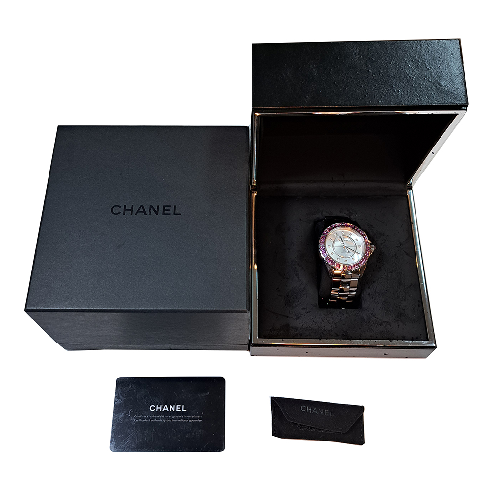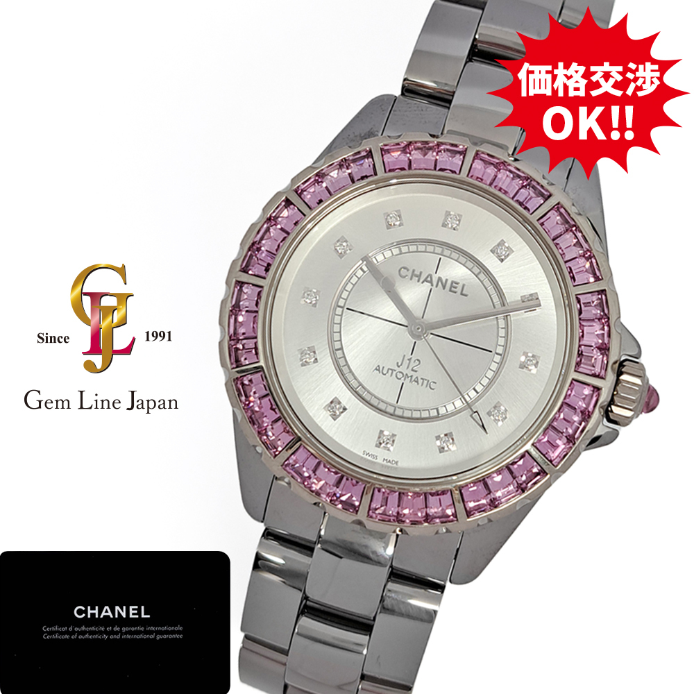 商品名 | シャネル J12 H3295 38mm クロマティック チタンセラミック WGベゼル ピンクサファイア 12P純正ダイヤ ギャラ付 メンズ 自動巻 時計 | ||