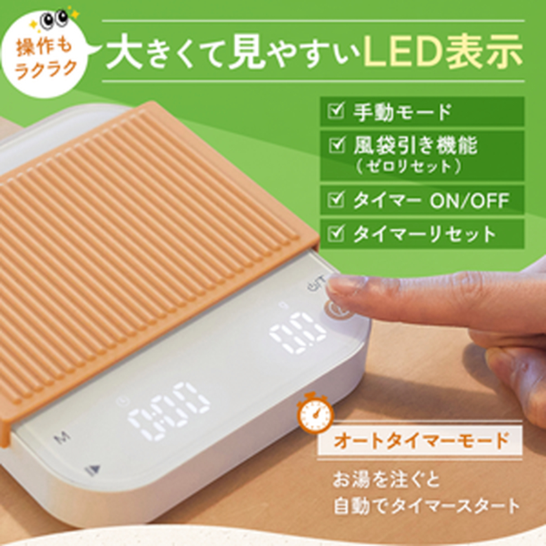 高精度コーヒースケール オートタイマーモード搭載 ホワイト/ホワイト ドリップスケール Type-C LEDディスプレイ