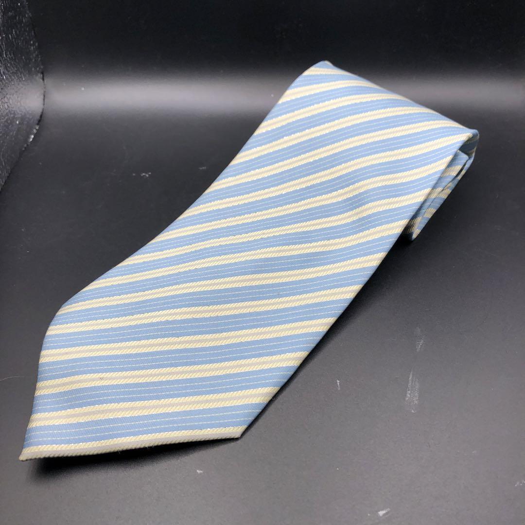 青と黄色のストライプのハンドメイドネクタイ。