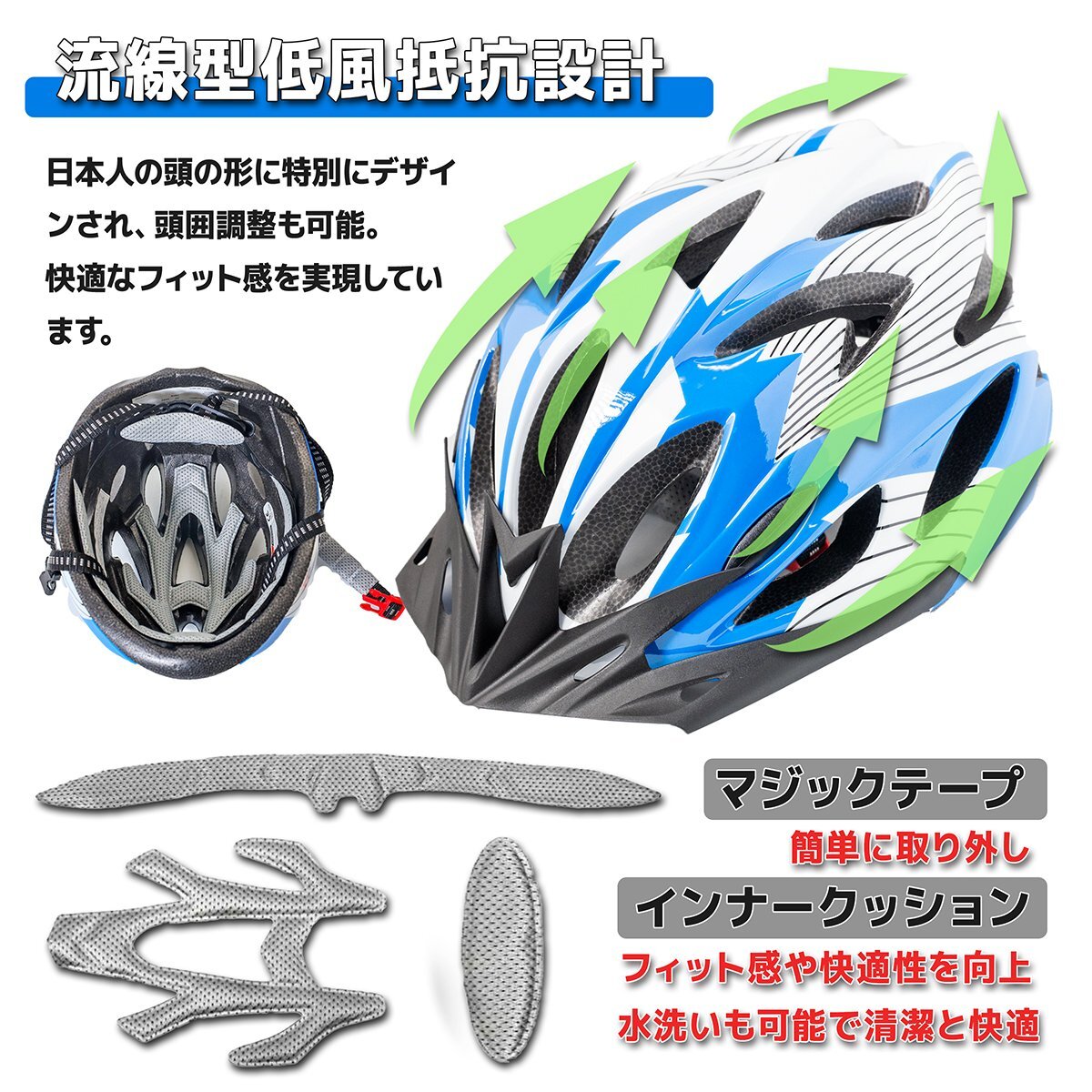 商品の詳細 | 商品詳細 スタイリッシュでシンプルなデザインの超軽量 街乗り向け自転車用ヘルメットです。 CE規格認証取得品だから安心してご使用いただけます。頭囲48~56cmの間で調整可能です。 【材質】 外装:ポリカーボネート 内装:発泡スチロール PVC ※ご落札時ご希望のカラー番号も希望欄ご記入ください。 記入が無い場合、ランダム発送させていただく場合がございます。ご了承お願いします。 支払詳細 | ①UFJ銀行 ②ゆうちょ銀行 ③商品代引き ④楽天銀行決済 ⑤PayPayPayPay⑥クレジットカード⑦ヤフーカード Visa Mastercard JCB Diners American Expressの中からご自由に、お客様のご都合に合わせて選べる決済です。 | 発送詳細 | ・こちらの商品は基本送料無料となります。但し(北海道+330円、沖縄離島+550円別途) | 佐川急便の発送となります。 ・運送会社は当社指定の運送業者での発送となります。お客様の運送便の指定はできません。 ・通常、ご入金確認後1~3営業日で発送します(予約商品除く)。配送業者の状況によって、出荷予定日と実際の出荷日が前後する場合がございますが、あらかじめご了承願います。 ・日時指定は運送会社の対応時間で承りますが、まれに運送業者の都合や交通事情により指定通りに届かない場合もございます。 ・代引きの場合は手数料がかわります。 1万円未満300円 1万円以上3万円未満400円 3万円以上10万円未満600円 10万円以上1000円 返品、及び交換について | ・薄利でご提供していますので、初期不良は商品到着日より7日以内とさせて頂きます。商品到着次第、早急に商品チェックをお願いいたします。尚、交換品発送処理は当社に商品が到着してからとなりますので、予めご了承下さい。 | ・お客様の操作ミスや誤使用による不良との勘違いの場合は、着払い送料とご返送の送料をご負担して頂く形となりますので、不良時のご返品の際は動作や不良箇所をご確認の上、まずはご連絡をお願い致します。 ・箱も含めてすべてのパーツがそろってない状態。(1つでも欠けていますと交換致しかねます) ・お客様のご使用中にキズや汚れ破損が生じた商品は返品できかねます。 ※返送の際は、当店指定業者以外での返送は対応できかねますのでご注意ください。指定外の発送方法をとられた場合、差額の代金請求を行わせて頂く場合が御座います。 ・初期不良時のいきなりの「悪い・非常に悪い」での評価連絡に対しては対応できません。 注意事項 | ※出品中の商品は他サイトと同時販売の為、また、商品自体に問題があった場合などは、オークション終了前に出品を予告なく取り消しさせて頂く場合がございます。 | ※またオークション終了落札後でも同様の事態が起こりうる場合がございます。 ※その際は納期等ご連絡致しますがキャンセルをさせて頂く場合もあります。 ※土日祝を除き24時間以内にメールが届かない場合はご連絡ください。また、フリーメールやケータイ等でメール未着になる場合がありますので、未着の場合はメールにてご連絡ください。 ※評価からのご連絡は対応出来ませんので、 必ずメール及び連絡掲示板(非公開)にてご連絡を下さいますようお願い致します。 誠にお手数ですが連絡掲示板より非公開にてご連絡をお願いいたします。 ※落札後は早急にご購入手続きを行って頂きますようお願い申し上げます。詳細は「オークションヘルプ 落札した後の流れ(落札者)」をご参照ください。 ※落札日より3日経過しご注文手続きを行って頂けなかった場合はキャンセル扱いとなり、それ以降ご注文を承れなくなる場合が御座います。 ・ご購入手続き未実施が起因による、落札者削除等あらゆる処置につきまして、当方では一切責任を負いませんので、予めご了承願います。 ※送料や配送方法は変更される可能性があるため、落札後の購入手続き画面を確認してください。尚、お支払い金額不足の場合は再度不足分をご入金頂くこととなりますので、ご確認の上ご入金下さいませ。 ※全てのご対応は、お客様のご連絡内容を正確に確認する為、また全ての内容を記録に残すため、メールのみのご対応となります。お電話・FAX等でご連絡頂きました場合、ご対応致しかねる場合が御座いますので予めご了承をお願い申し上げます。 ・当店はご落札の通知、発送伝票番号の通知は、必ず行っております。お客様のメール受信設定によっては、落札通知・取引案内メール等、お送りできない場合が御座います。メールの受信設定やメールフィルタリング設定等に起因するご連絡の遅れやお取引の遅延、及びそれに伴う損害など弊社では一切責任は負いかねますのでご注意下さい。 ※ご入札前に必ずご自身登録のメールアドレスのご確認と、迷惑メールフォルダ設定等、当店メールアドレスdiysouko@shopingmaster.ocnk.netの受信設定お願いいたします。 ・入札後のキャンセル又は取り消しは他の入札者様のご迷惑となりますので、いかなる場合もお受け致しません。落札後のキャンセルは一切お