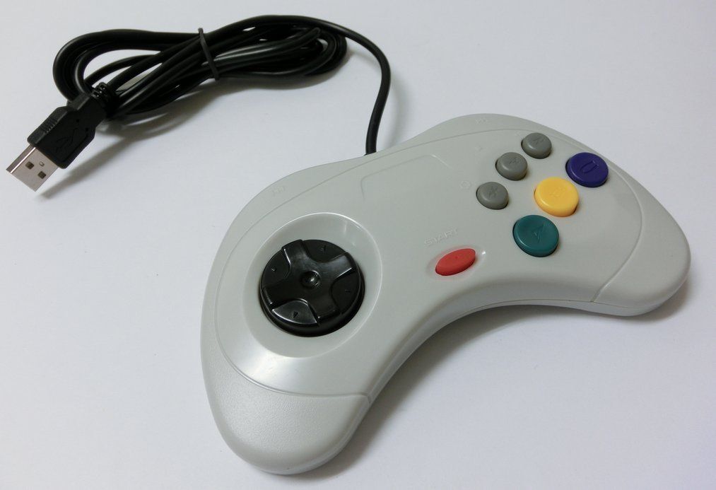 セガサターン6ボタンパッド形状のパソコン用USB接続コントローラーです。デジタル操作の6ボタン格闘ゲームに最適です。 |