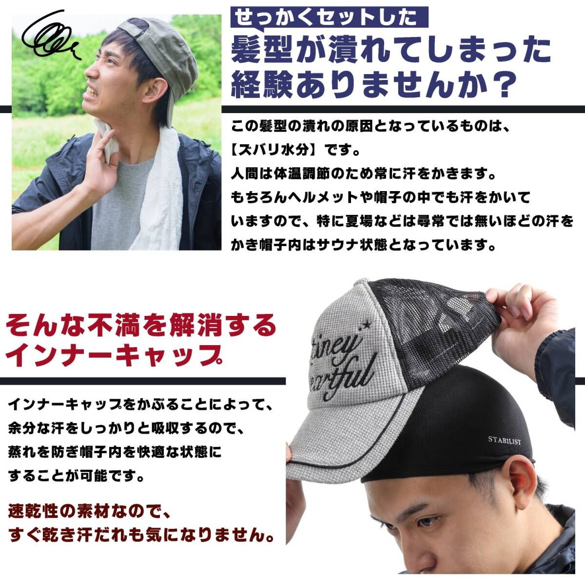 [スタビリスト] インナーキャップ ヘルメット バイク フリーサイズ 2枚 吸汗速乾消臭抗菌