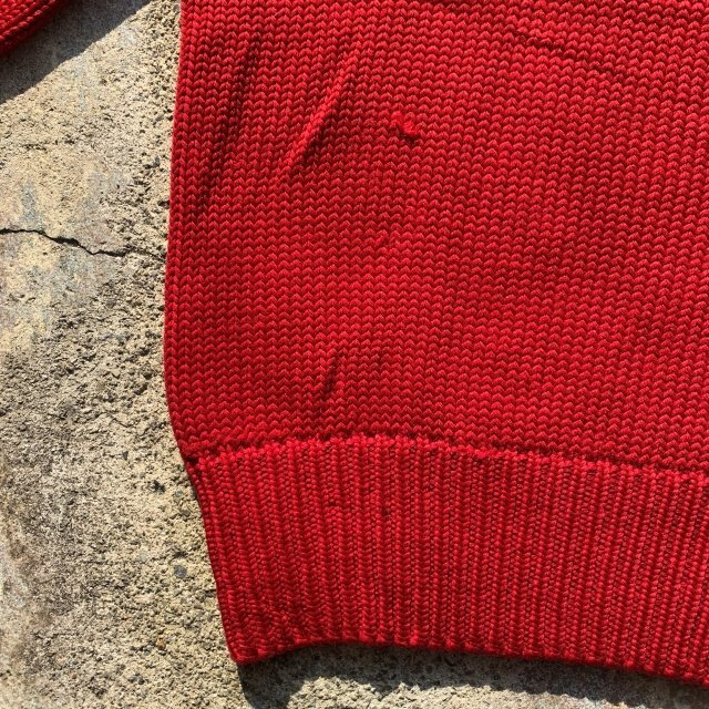 ★商品状態★ ・着用感があり、下腹部や背面に若干のダメージが見られます。 ・古着慣れされている方でしたら問題なく着用していただける程度かと思います。 ★素材★ おそらくウール 肉厚になります。 ★配色★ えんじ色が近いかと思います。 ★サイズ表記★ 不明 メンズM/L相当 ・実寸を参考にして下さい。 ★実寸サイズ★ 肩幅51㎝ 身幅54㎝(脇下~脇下) 着丈69㎝(襟下~裾) 袖丈59㎝(肩~袖先) ・平置きにての採寸となります。 ・若干の誤差はご了承ください。 |