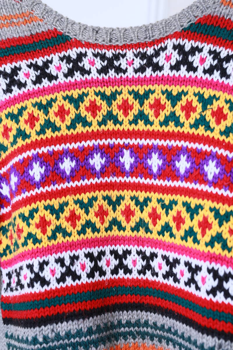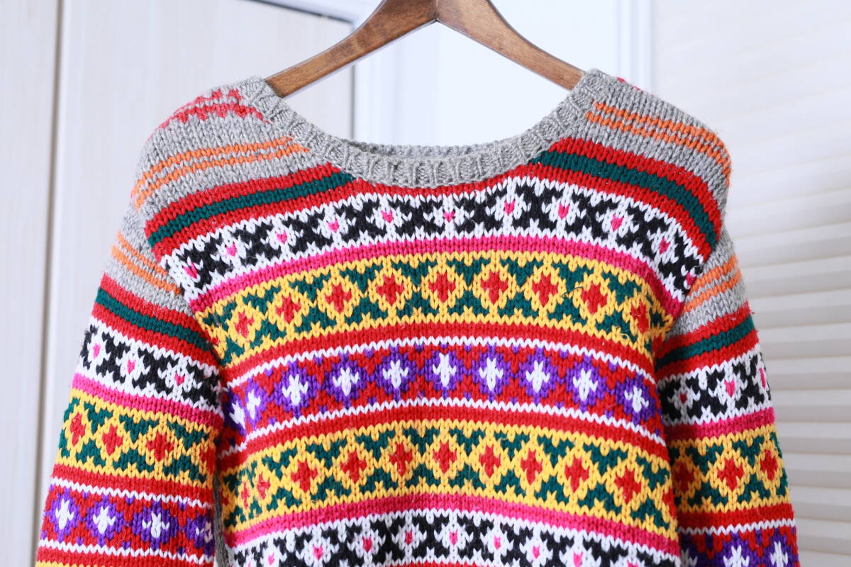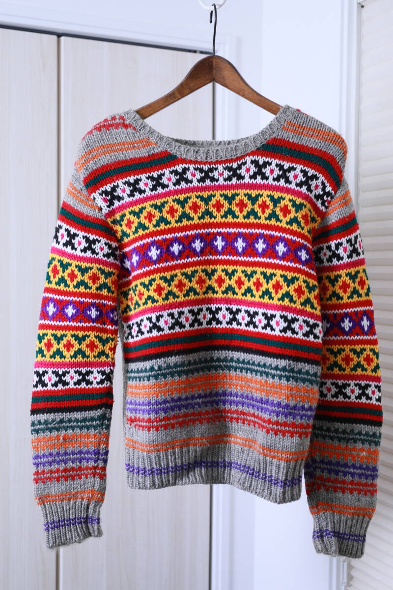 ネパール製H.R.MARKET ハリウッドランチマーケット 民族柄ローゲージニットセーター