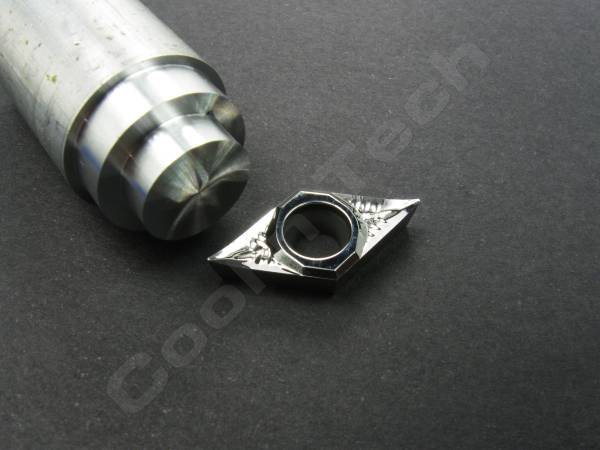 高すくい角の鏡面仕上げ超硬ポジティブチップは溶着し難いため構成刃先による引っかかり感が無く、切りくず処理も良好なため低抵抗でサクサク切削でき、国産のタンガロイ製と比較しても遜色なく素晴らしい光沢の仕上げが可能でコストパフォーマンスは最高です。
