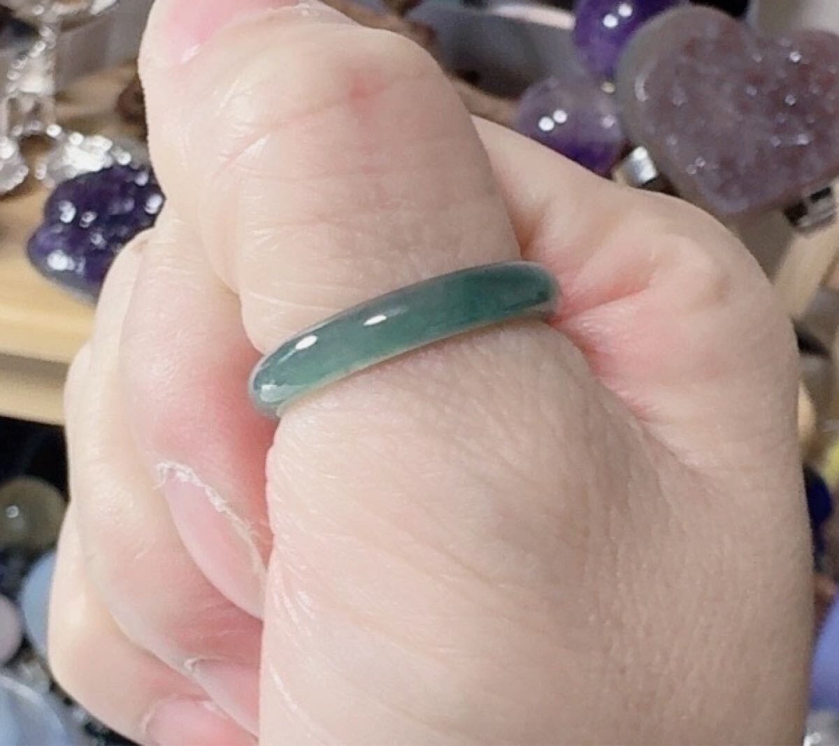 R2-0567天然本翡翠《本物保証》 藍水翡翠 指輪約19号 一点物 希少 縁起物 お守り 魔除け 昇進 成功 風水 金運 財運 幸運 幸福