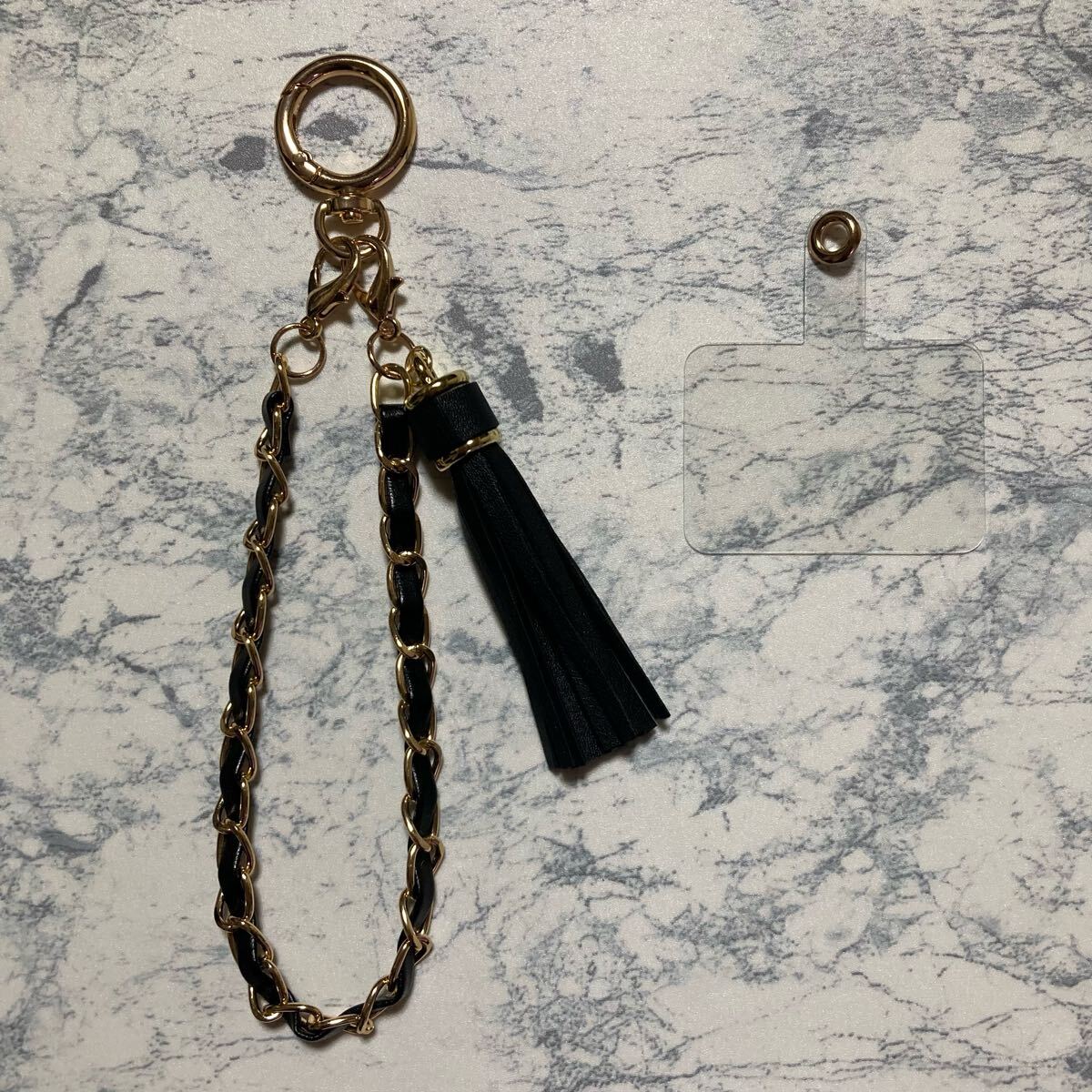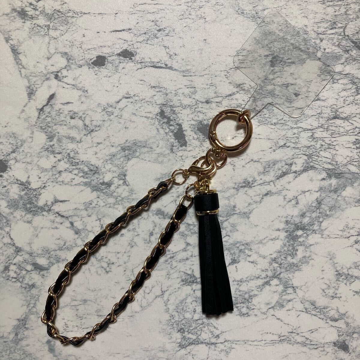 スマホ用 レザー調 ゴールドカラー チェーンストラップ タッセル付き ハンドストラップ 手首ホルダー ハンドメイド