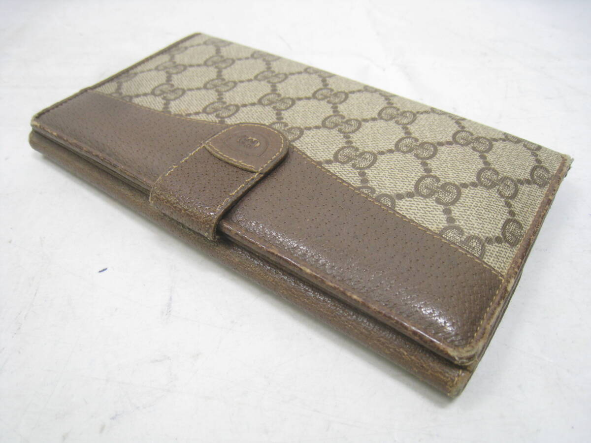 イタリア製 オールドグッチ GUCCI 長財布 ウォレット 035043-0808 GG柄 茶 ブラウン