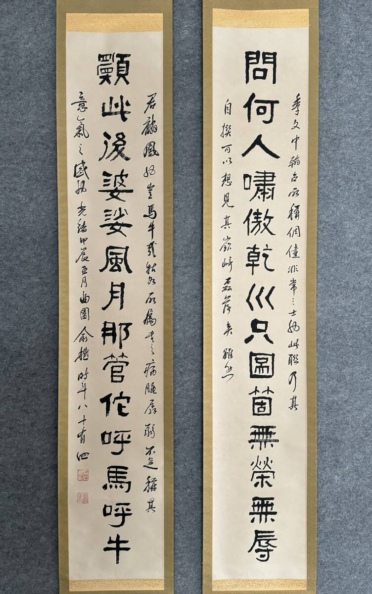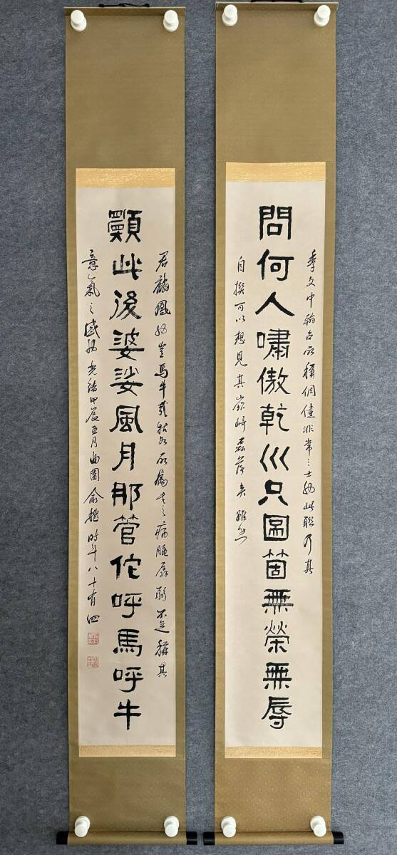 『三希堂』 中国画 古美術 [兪越書道対聯] 掛け軸 真筆逸品 肉筆保証 中心尺寸129.5X22.5cm ABC320