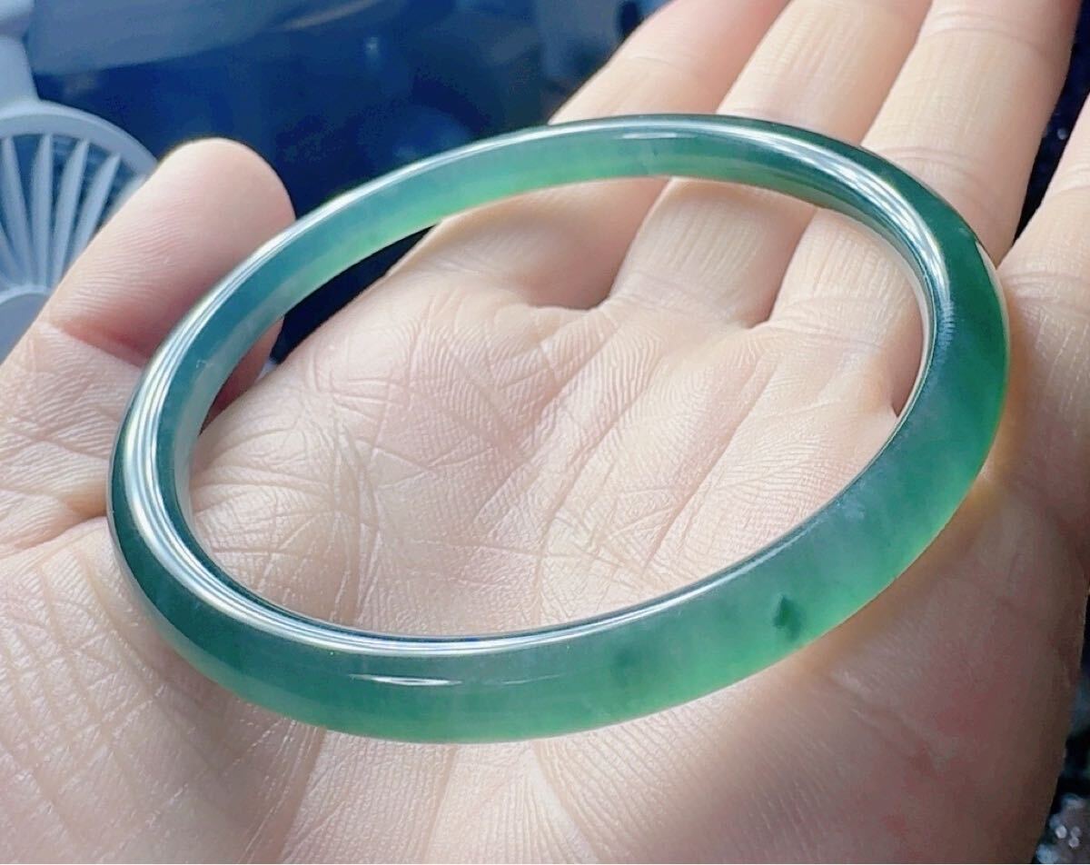 R2-0592天然本翡翠《本物保証》 藍水翡翠 バングル56.5mm (58まで着用可)一点物 希少 縁起物 お守り 魔除け 昇進 成功 風水 金運 財運 幸運 幸福