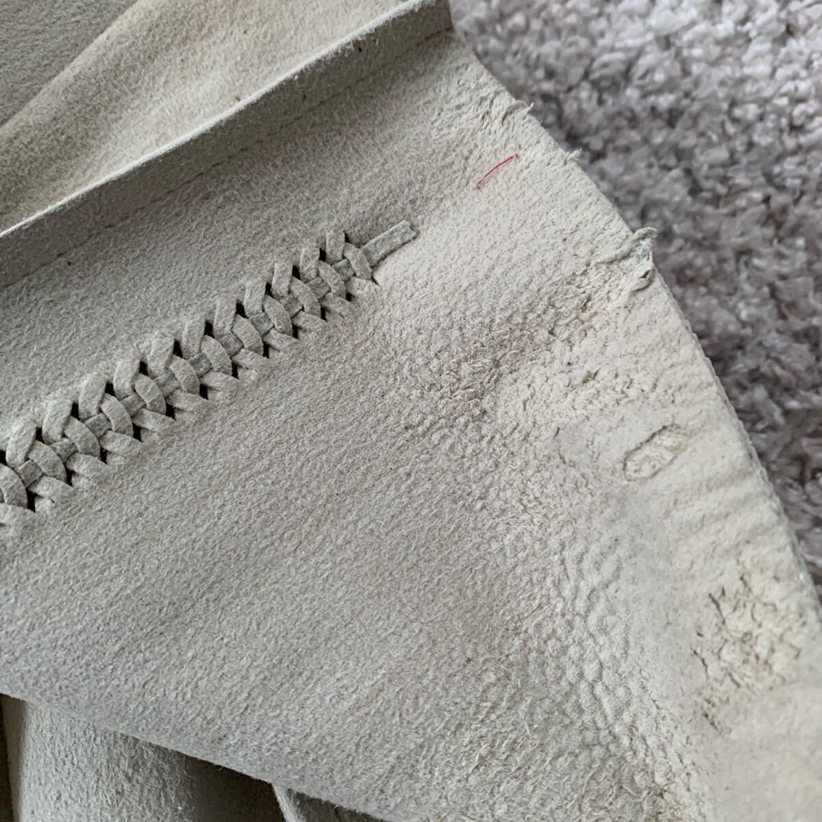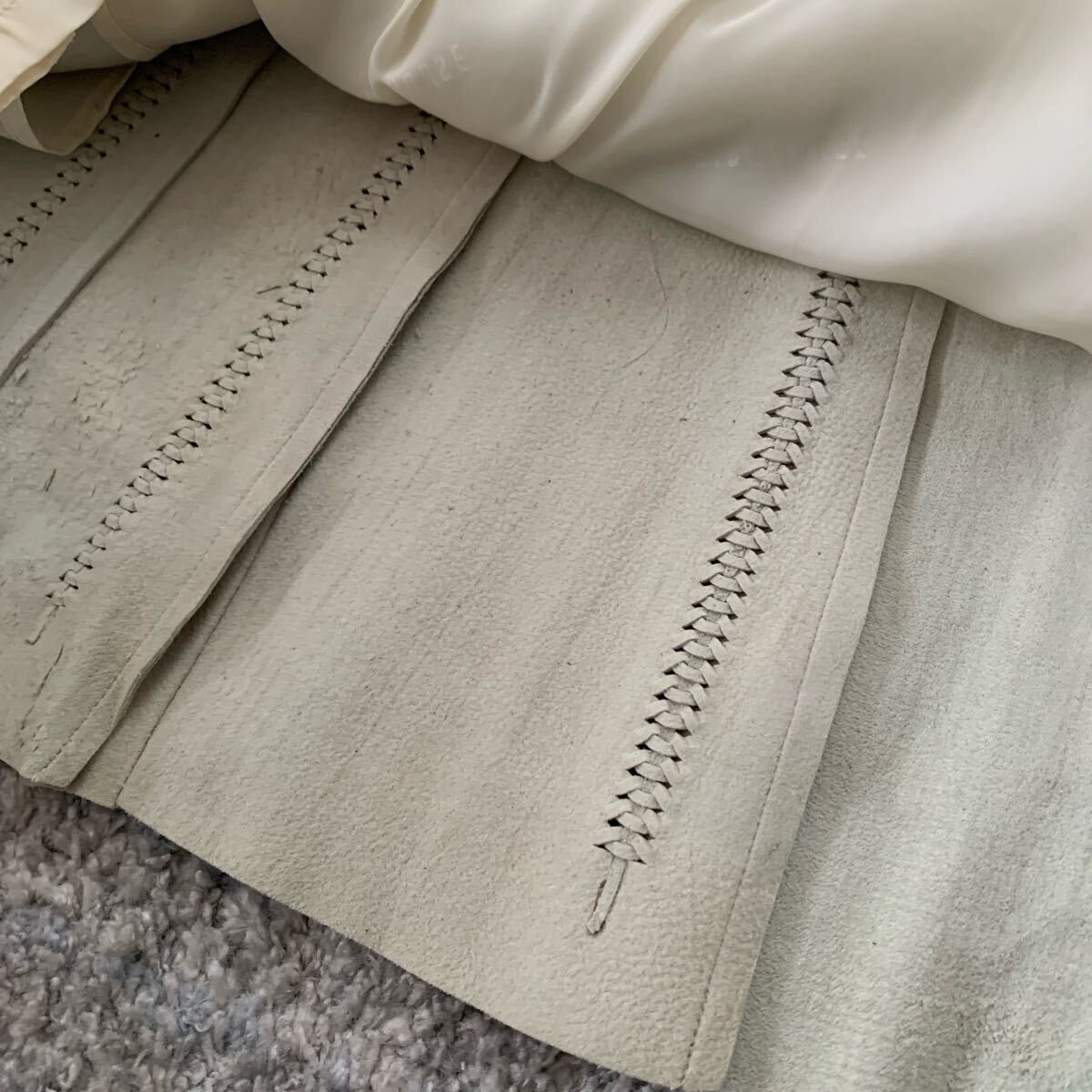 ウエストあたりに小傷等ございます。写真を撮りましたので、ご確認ください。また、革の風合いはシワ等様々ございます。