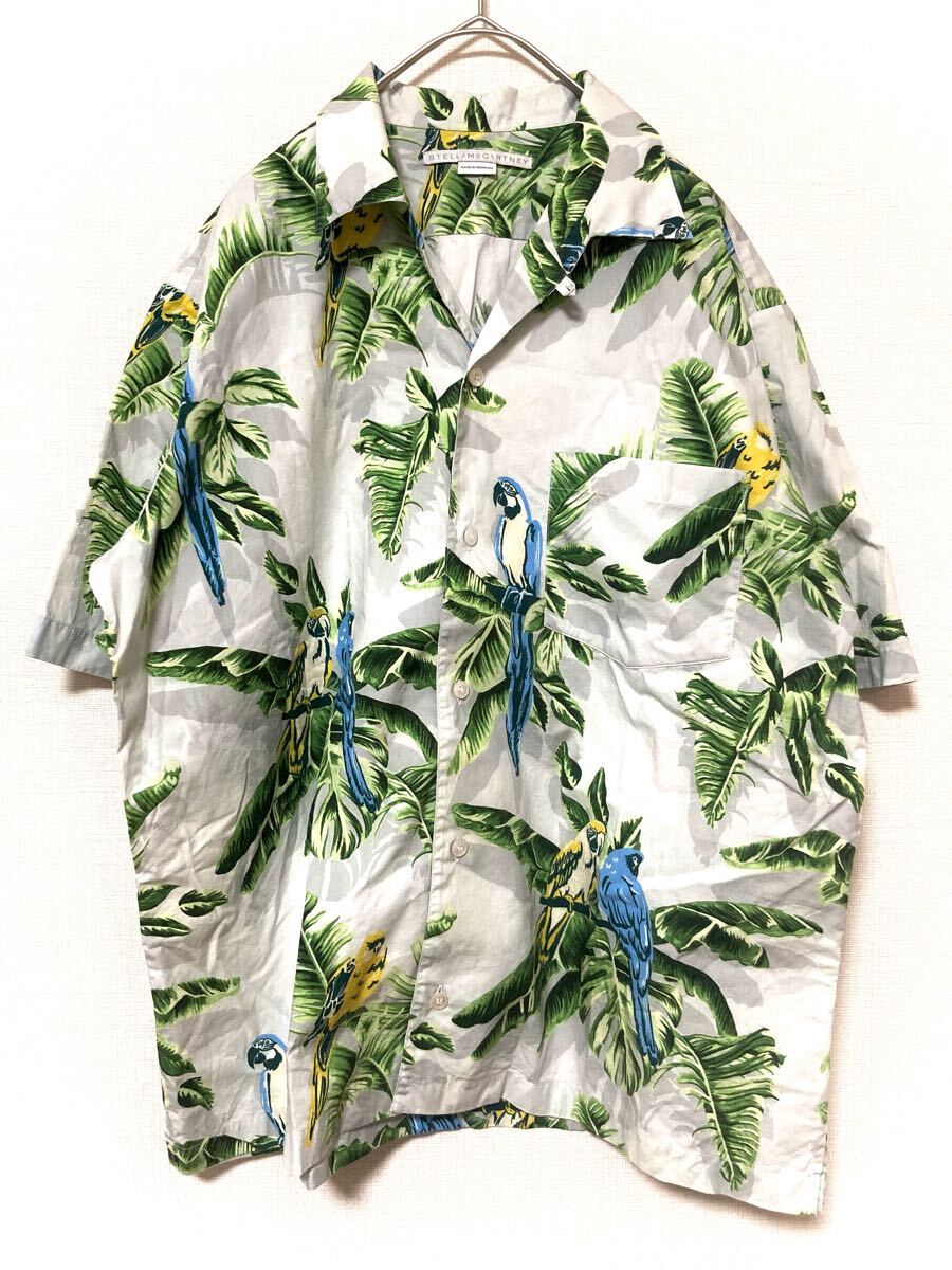 植物と鳥の柄の夏らしいオープンカラーアロハシャツです。