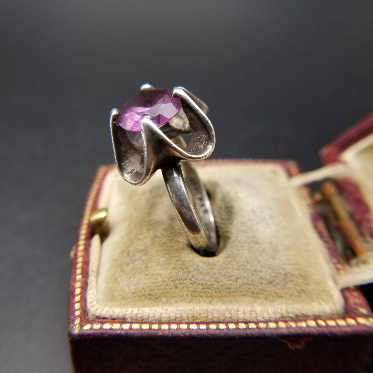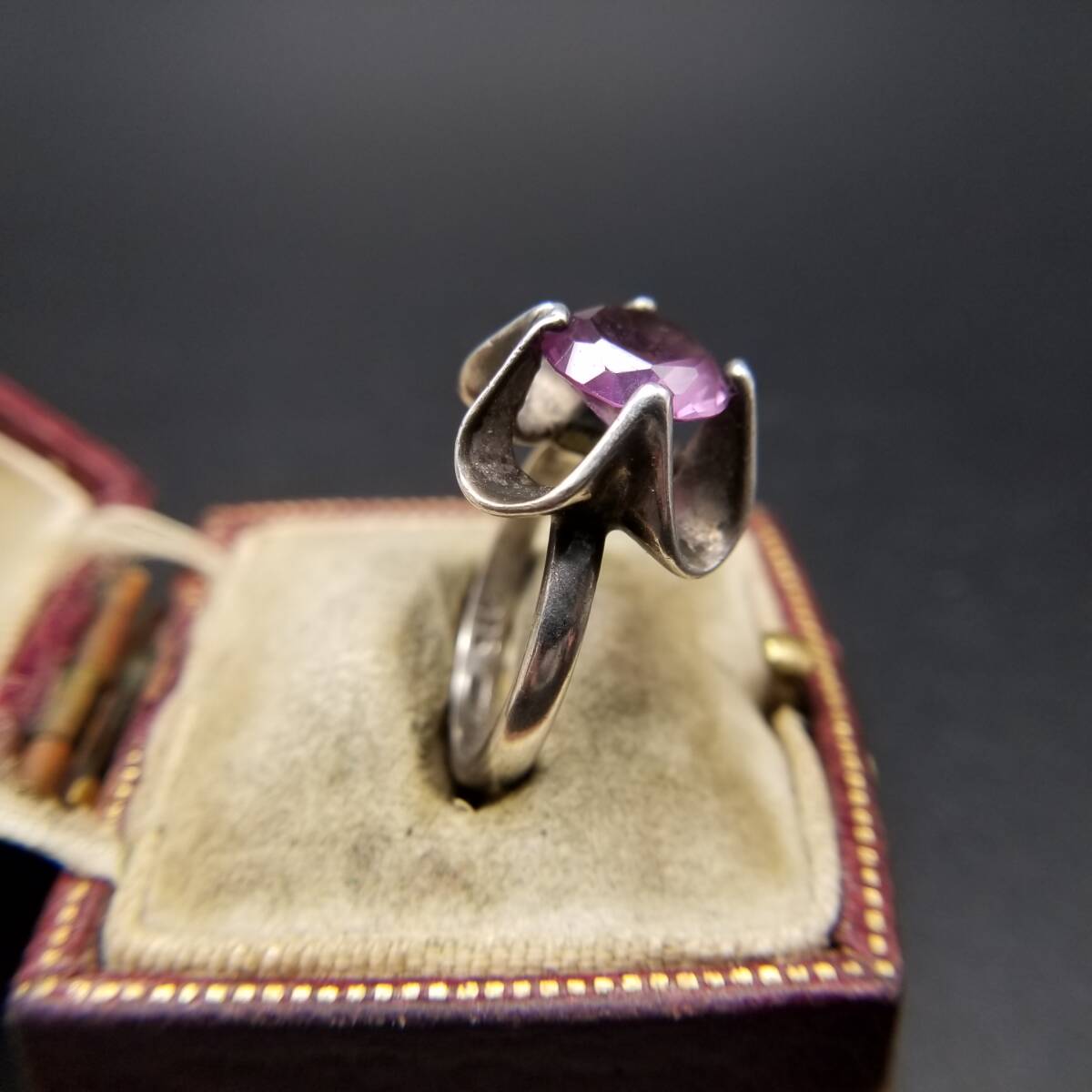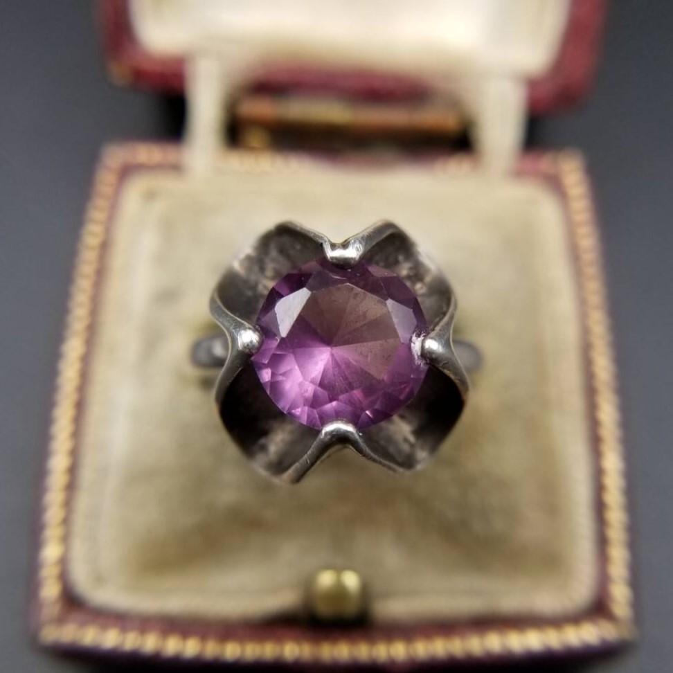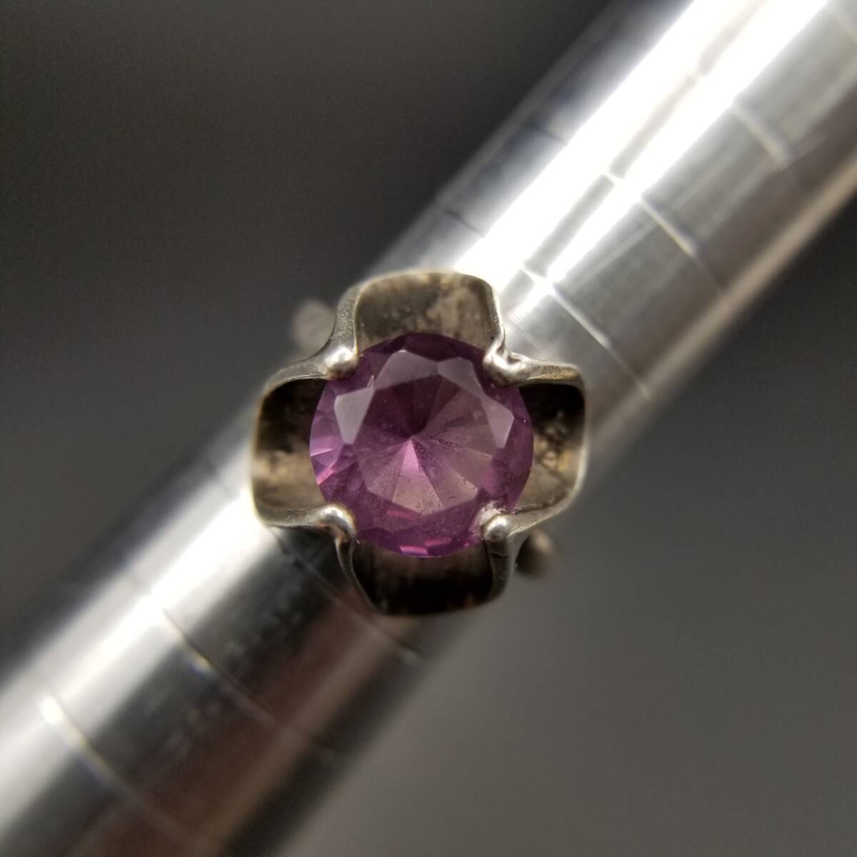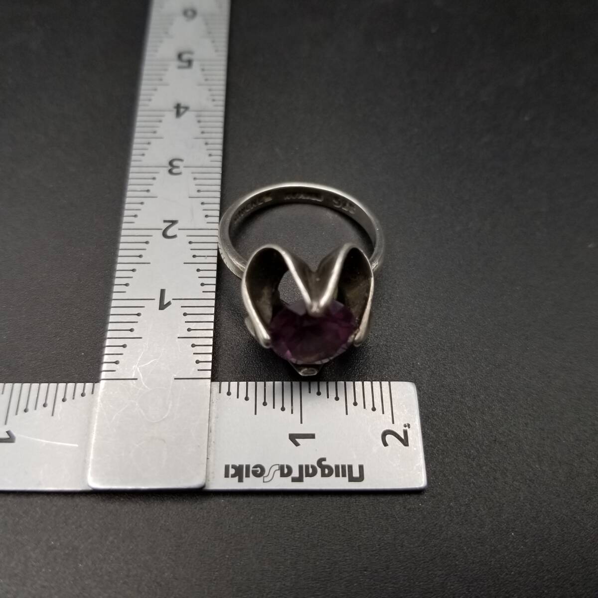 Sanchez メキシコ 925 シルバー パープル サファイア ヴィンテージ フラワー リング 銀 指輪 大ぶり 存在感 MEXICO Y21-X