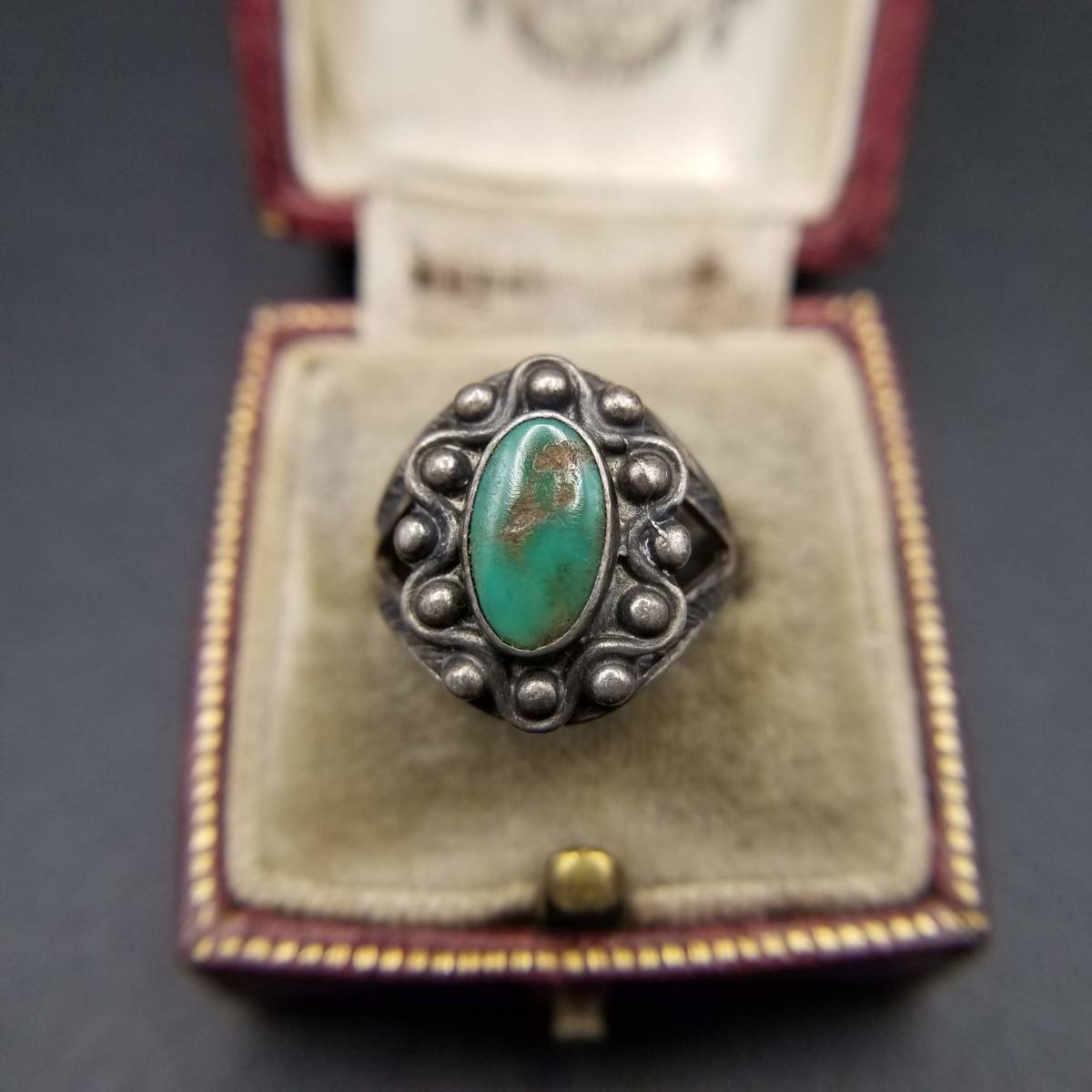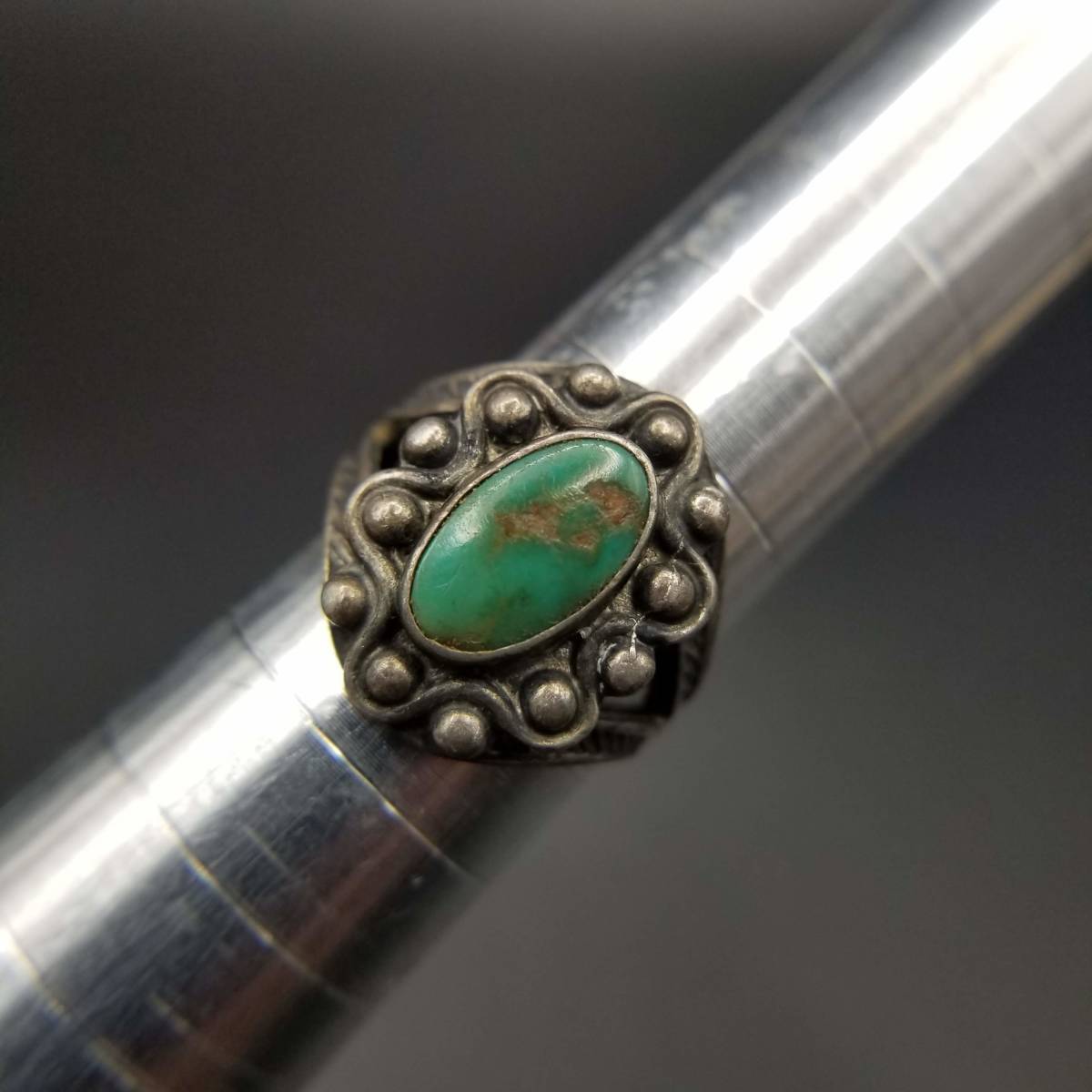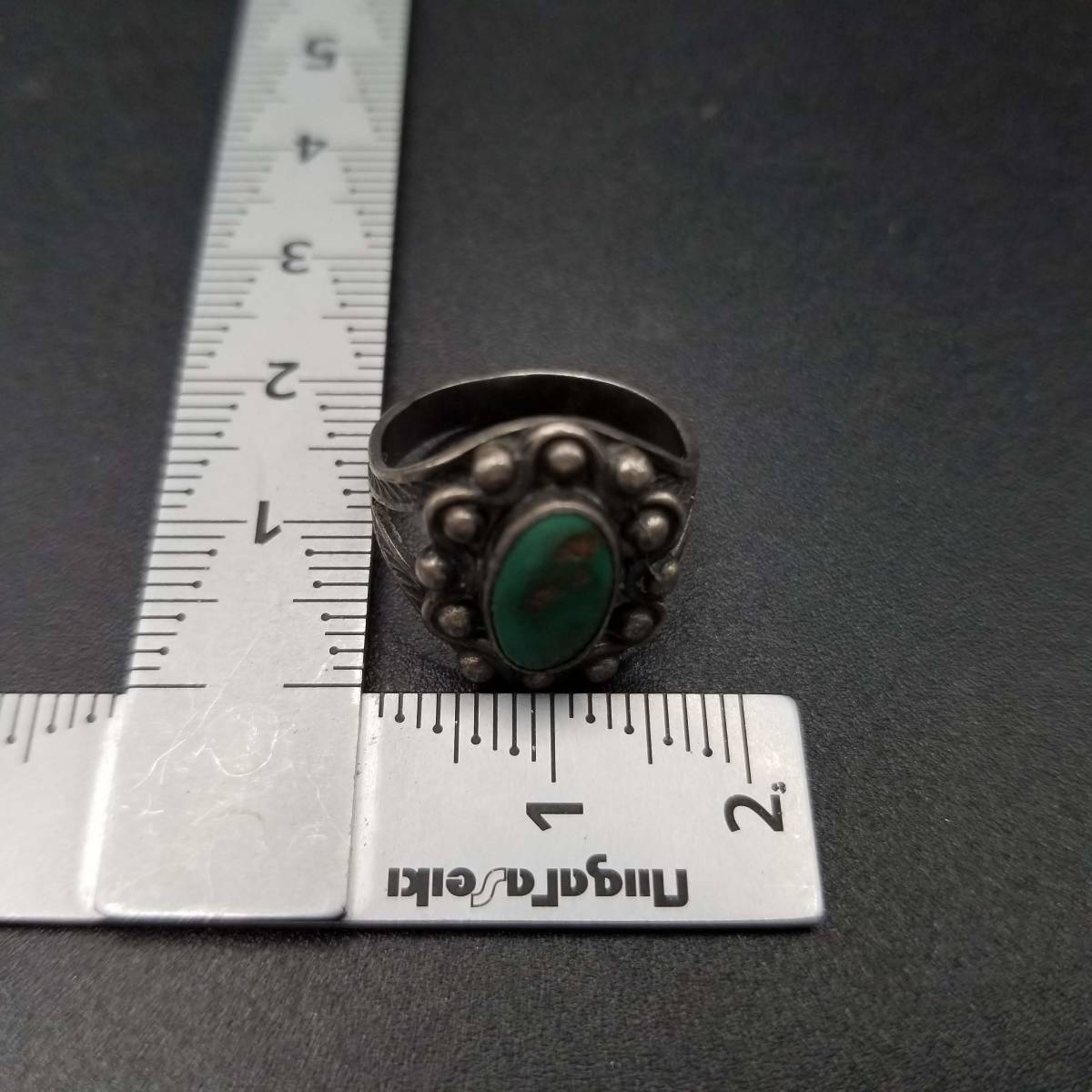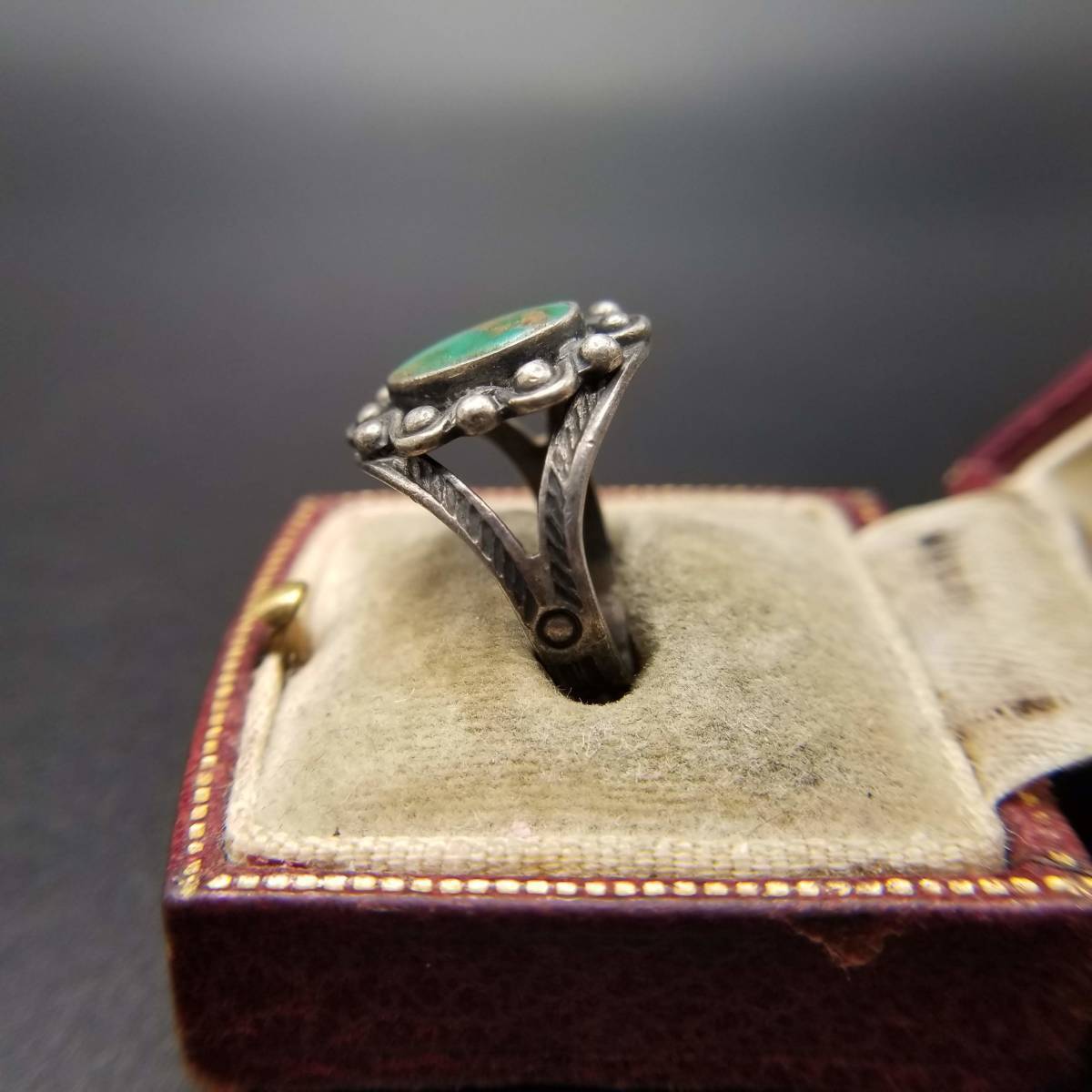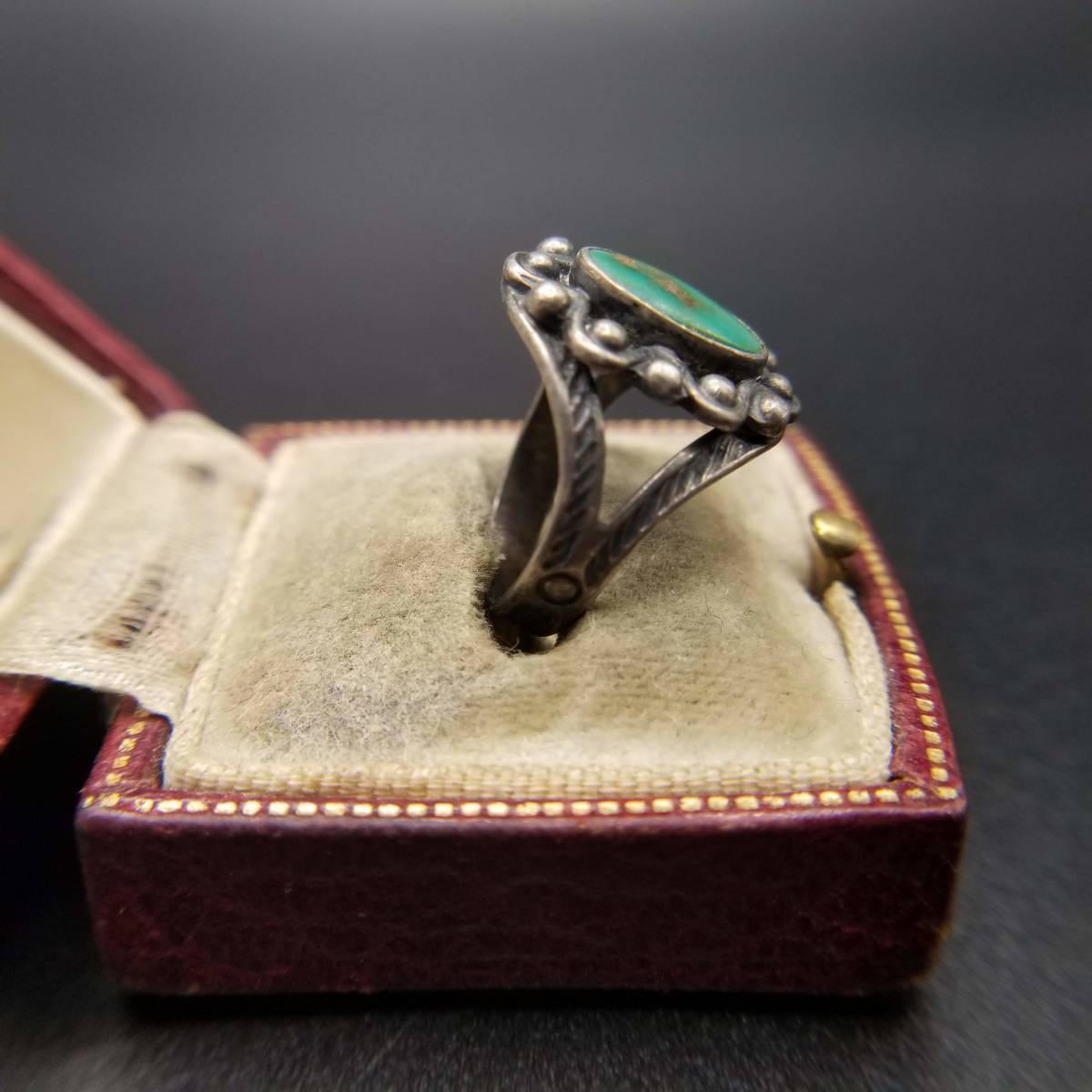 ターコイズ  ドット装飾 アローヘッド スタンプワーク ヴィンテージ リング 925 シルバー 銀 指輪 レトロ サウスウェスタンジュエリー Fred Harvey Style Y6-M③