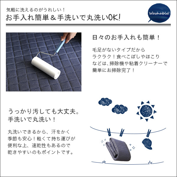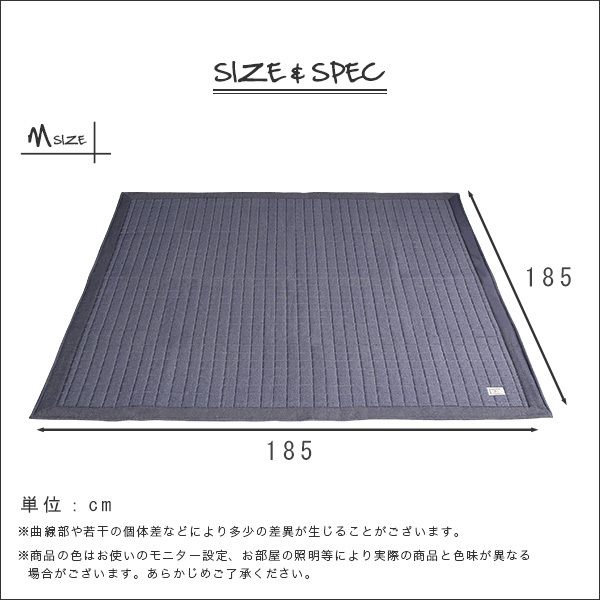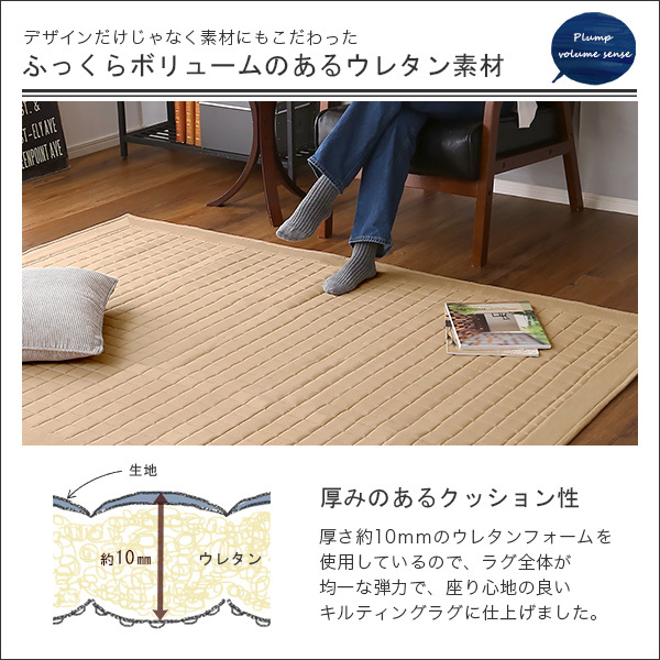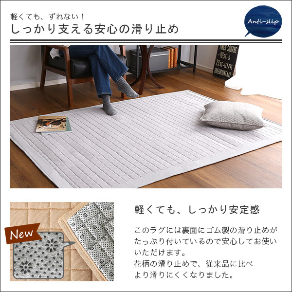 キルティングデニム調ラグMサイズ(185x185cm)オールシーズン、滑り止め付き、手洗い対応 Derid-デリッド- ライトグレー