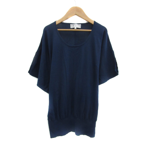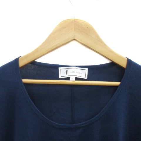ロペピクニック ROPE Picnic ニット カットソー 五分袖 ドルマンスリーブ ラウンドネック 無地 38 M 紺 ネイビー /YS1 レディース