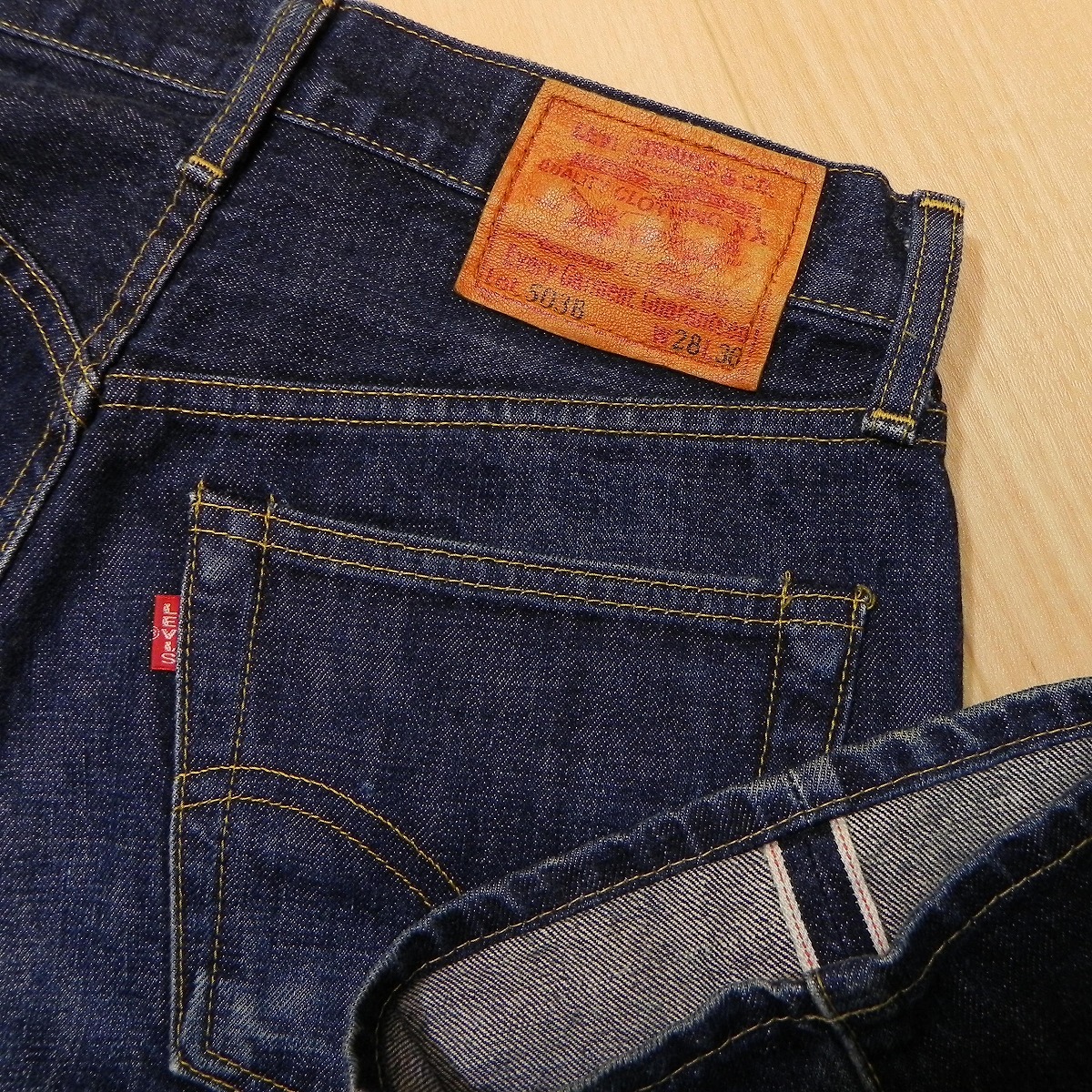 ●あくまでも古着のため、ノークレームノーリターンでお願いいたします。使用感はございますが、とくにダメージございません。140周年記念モデルで、ボタン裏J09です。 色も濃いめですので、活躍すると思います。裾はシングルステッチで裾上げされております。