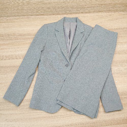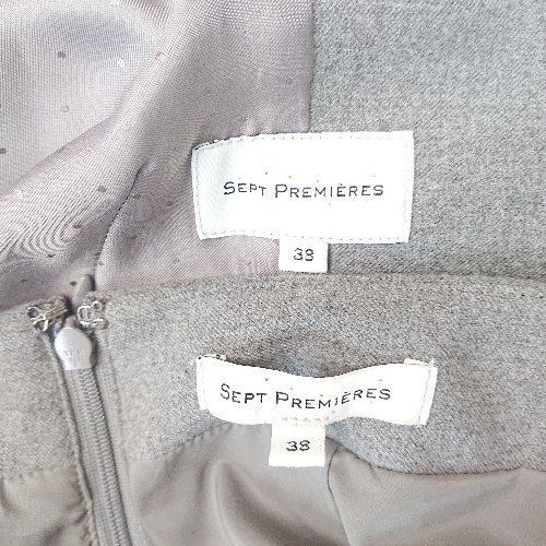 ◇ SEPT PREMIERES ビジネス 会社 秋冬 オフィス 仕事 膝丈 S スカートスーツ サイズ38 ライトグレー レディース E