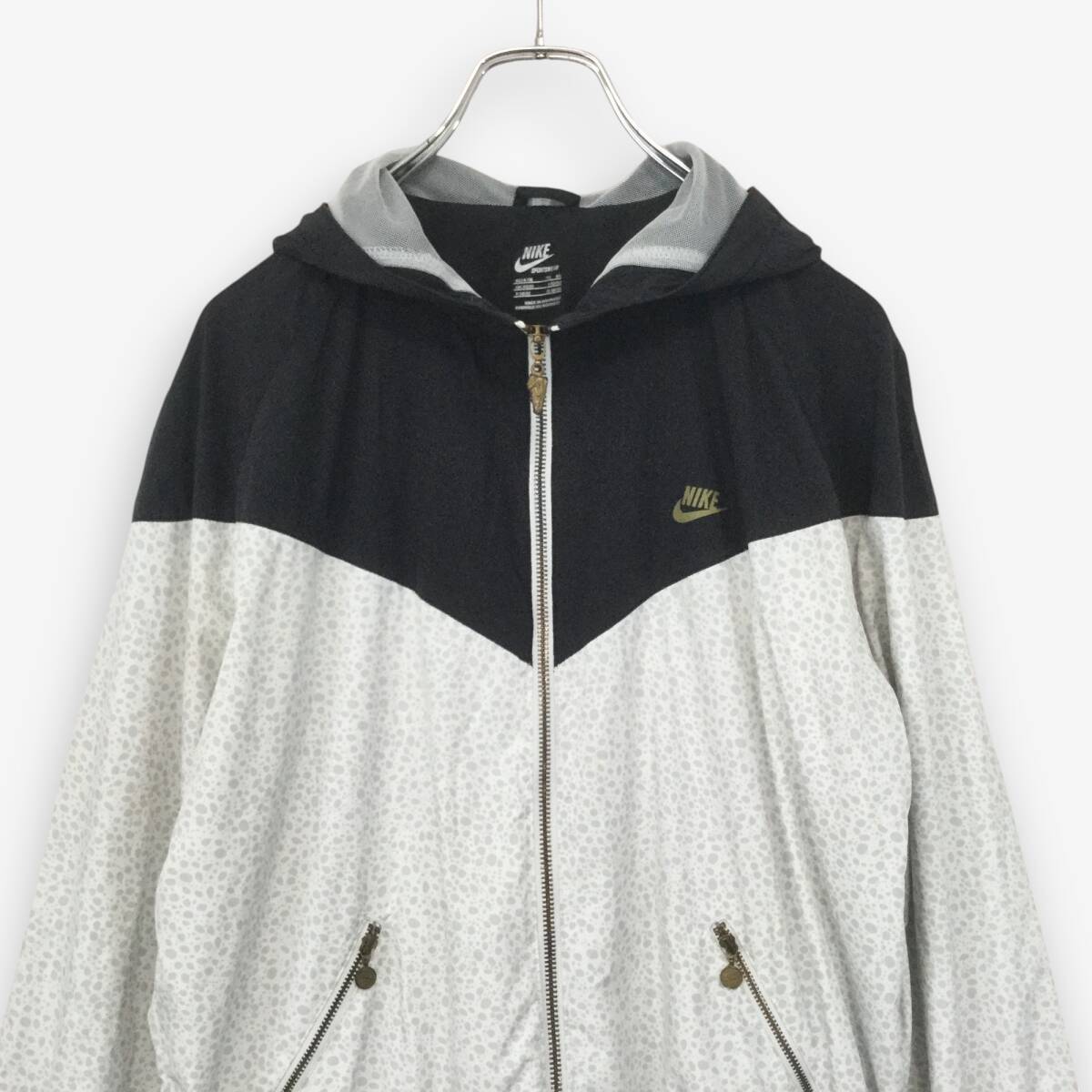 【ナイキ ナイロンジャケット】 90s 切り替え 柄 ZIPチャーム スポーツジャケット M相当 黒白 NIKE 古着 [240929-014]