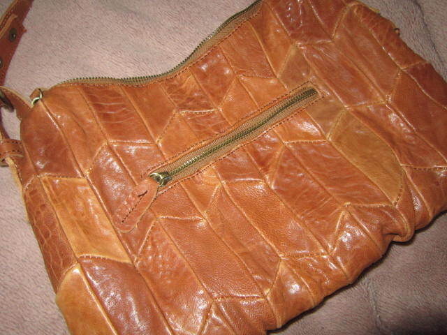 東京の古着屋で購入! 本革レザー パッチワーク ショルダーバッグ 茶
